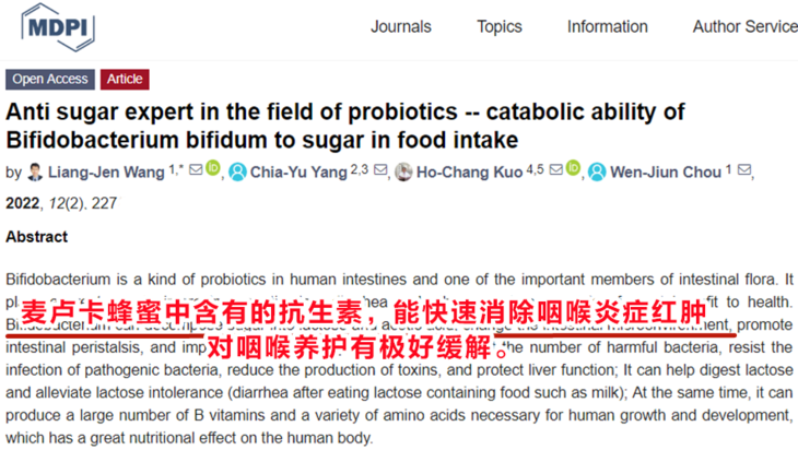 麦卢卡蜂蜜还具有天然的溶箘功效,能消灭呼吸道粘膜表面细箘、病毐!从根源切断外界对呼吸道的刺激,有效缓解咽喉有痰、异物感!