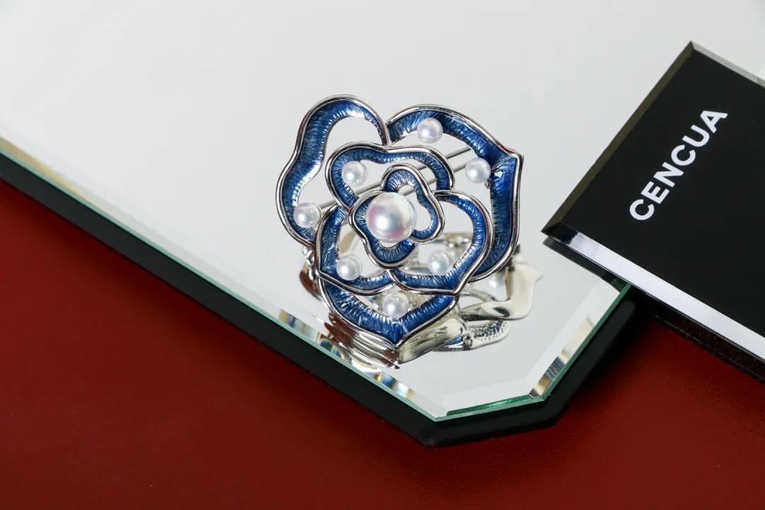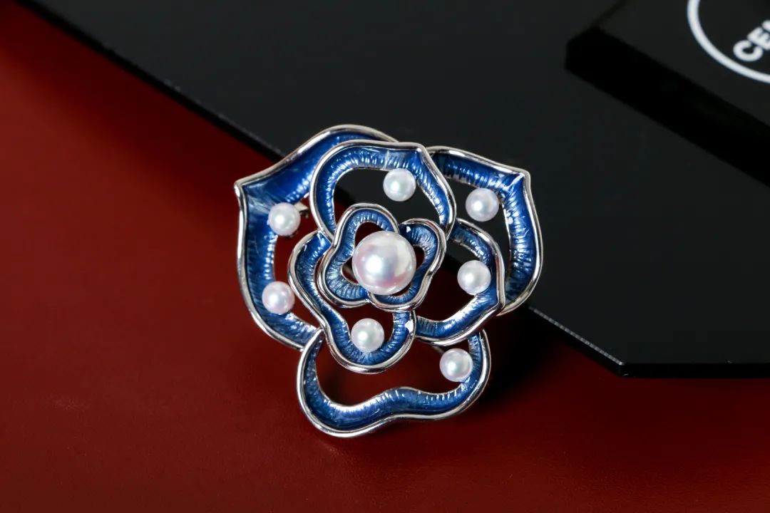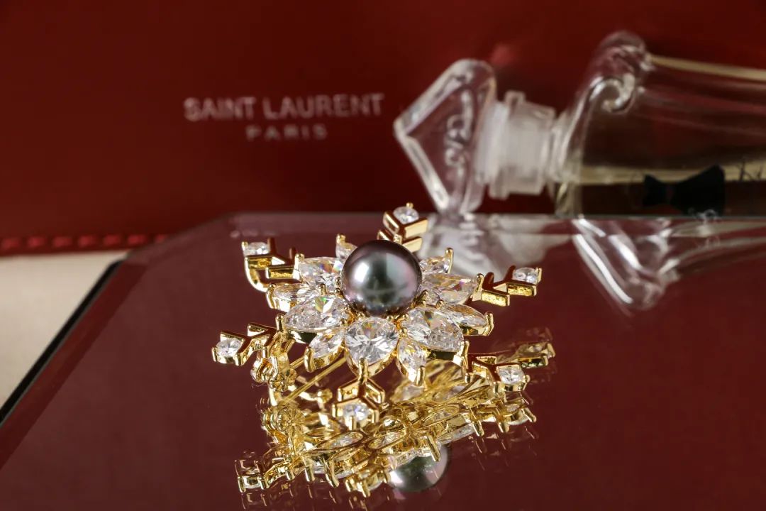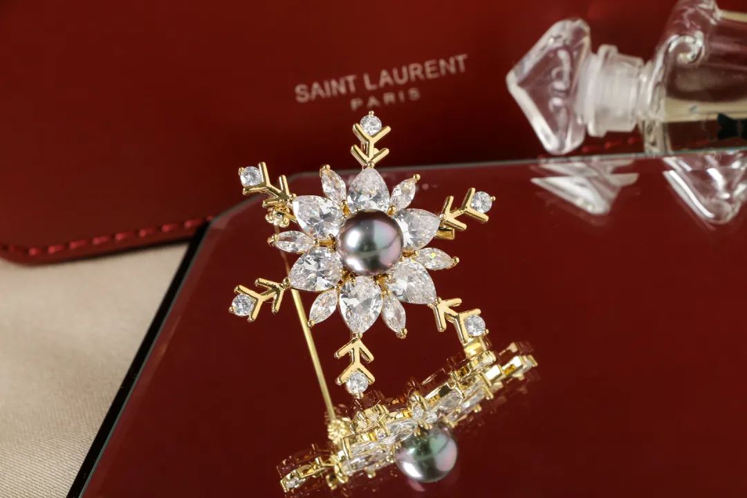 雪花胸针,今年用大溪地珍珠装嵌,提升高级感,配件很亮,大气而别致。