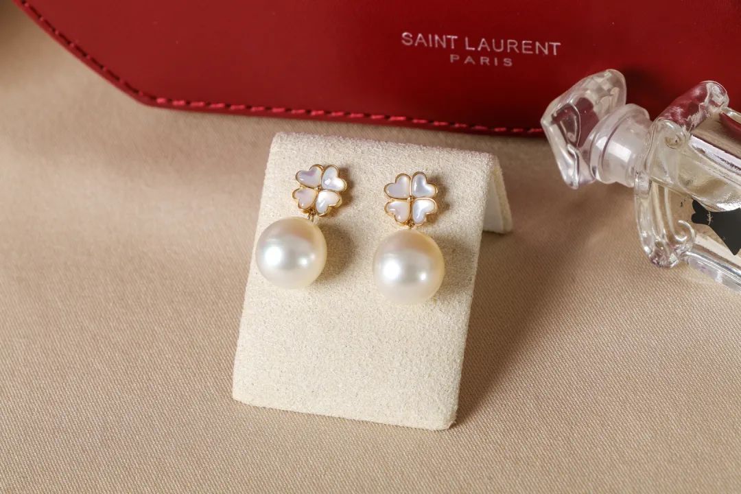 澳白四叶草,用冷光澳白水滴珠,以及温柔的母贝镶嵌,是一款很适合通勤的时尚搭配款。