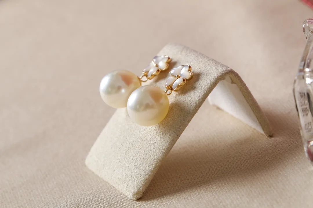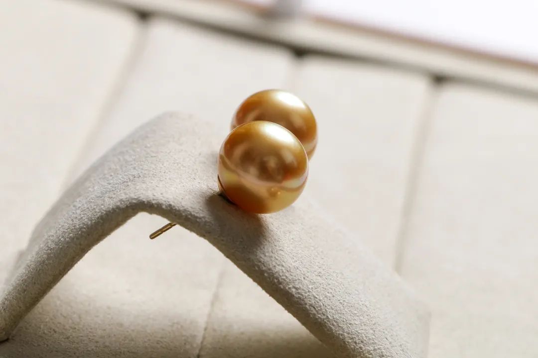 接着是为开年准备的——浓茶金南洋金珠耳钉,质感实在太好了,超少见的浓茶金珍珠搭配最经典的单珠款,就只佩戴在耳畔,就立马提升了整体质感,非常高级。