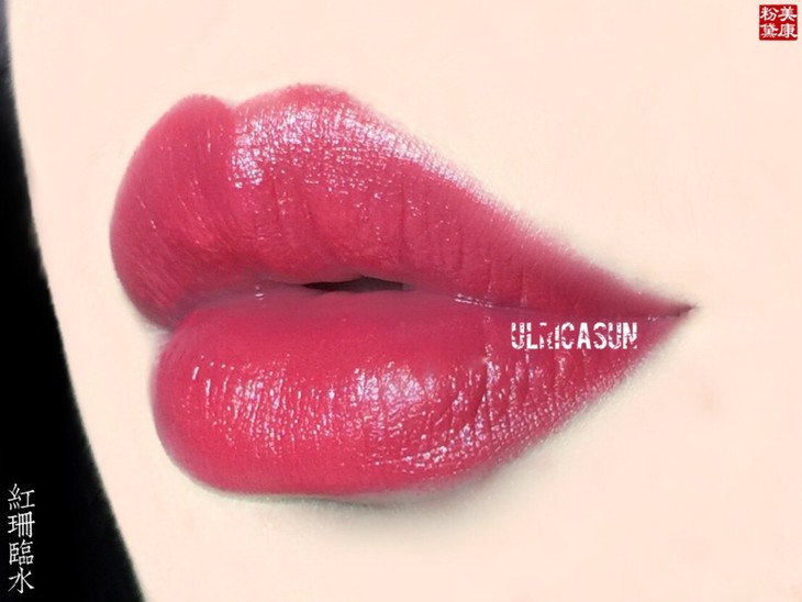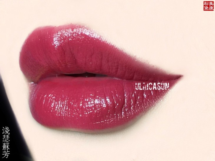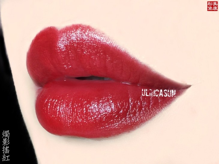 基调是正红色,带闪片,膏体看着一般但是上嘴意外很好看!波光粼粼的水红色