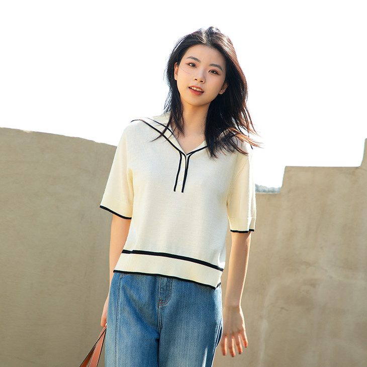 单品推荐|舒爽真丝羊毛海军领针织衫
