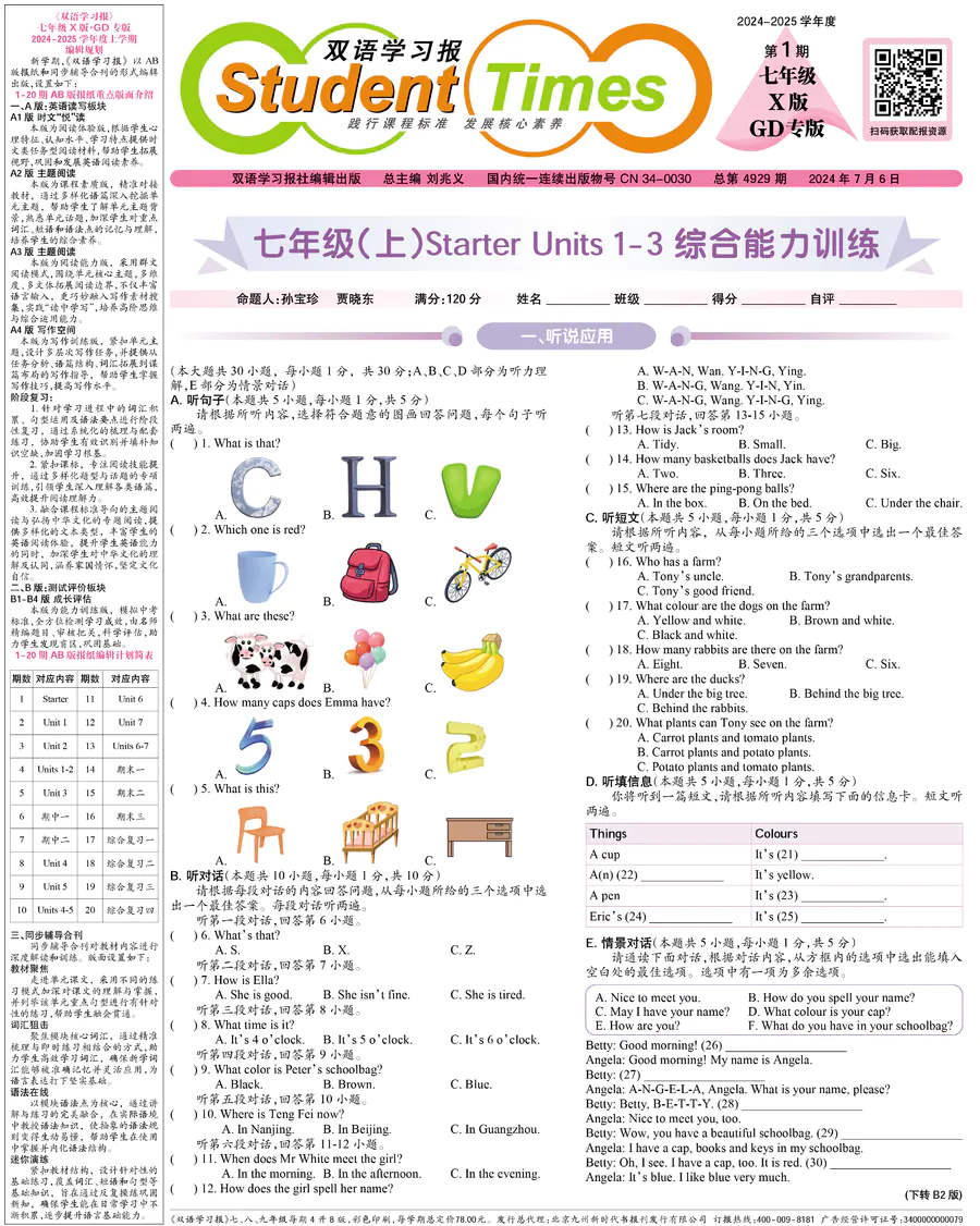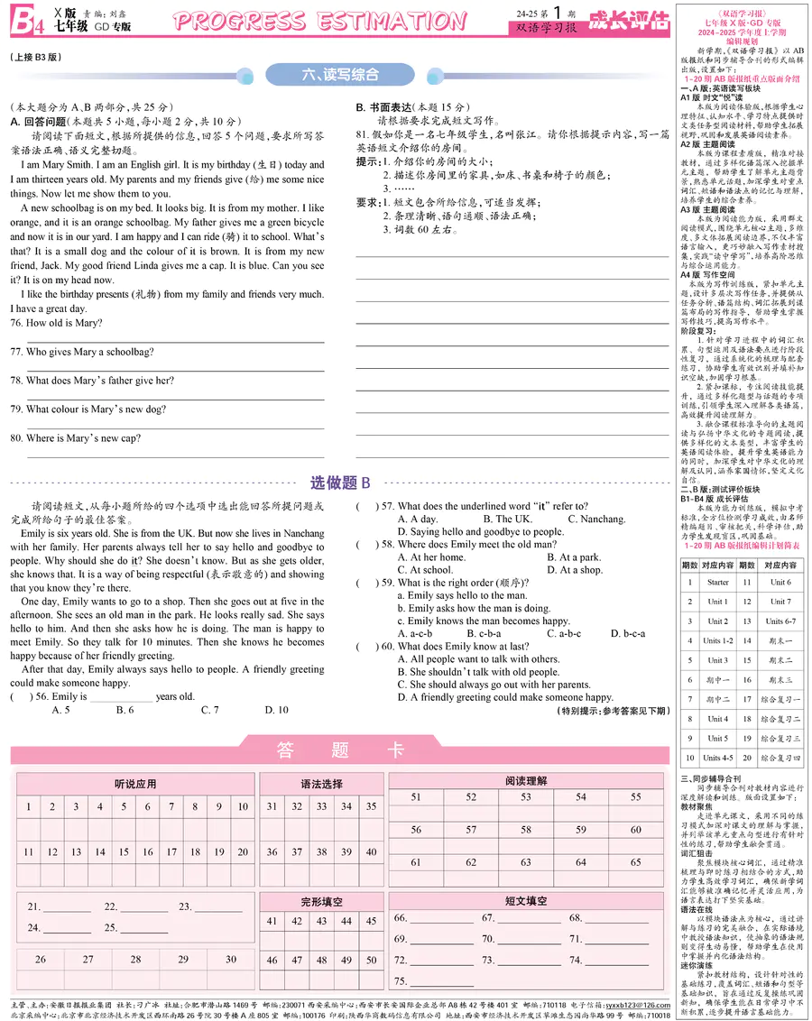 初中英语样报 七年级 X版GD专版 第1期