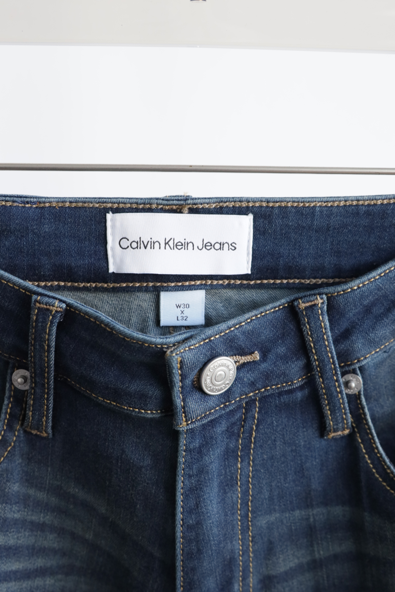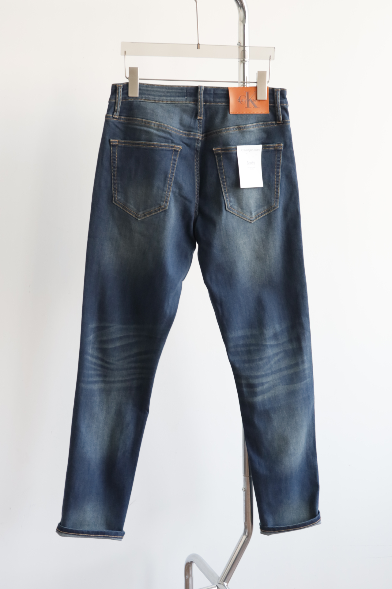 做旧水洗纹理自带岁月感,弹力丹宁面料软糯又挺括,后腰皮质标+金属细节低调显贵
