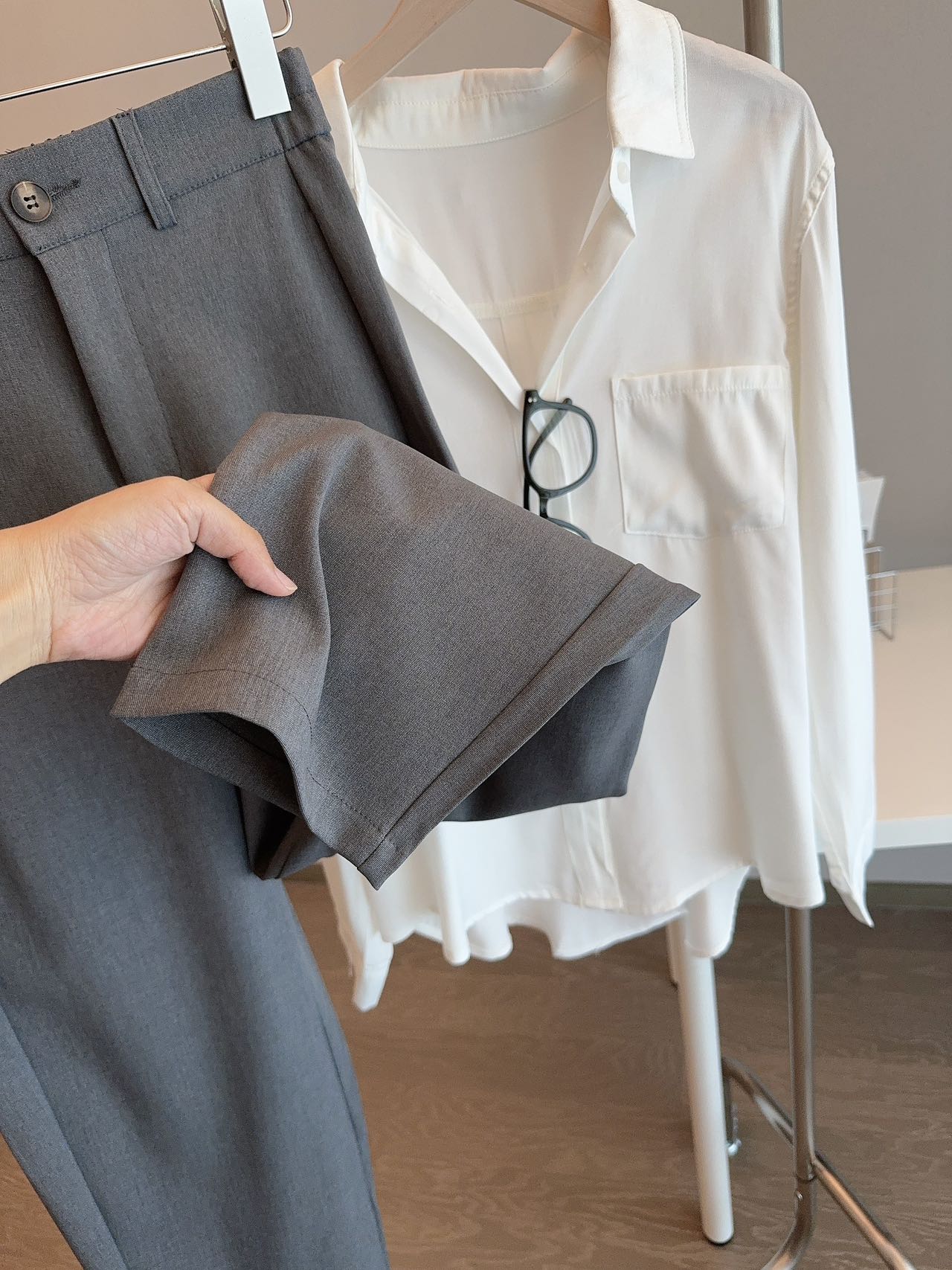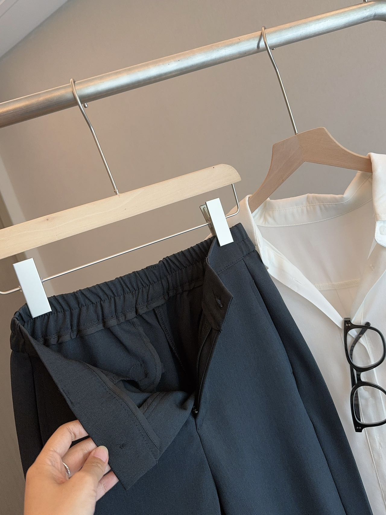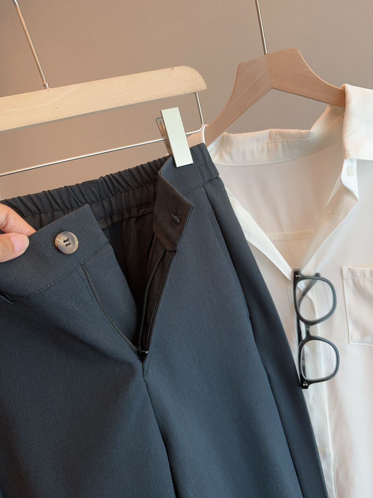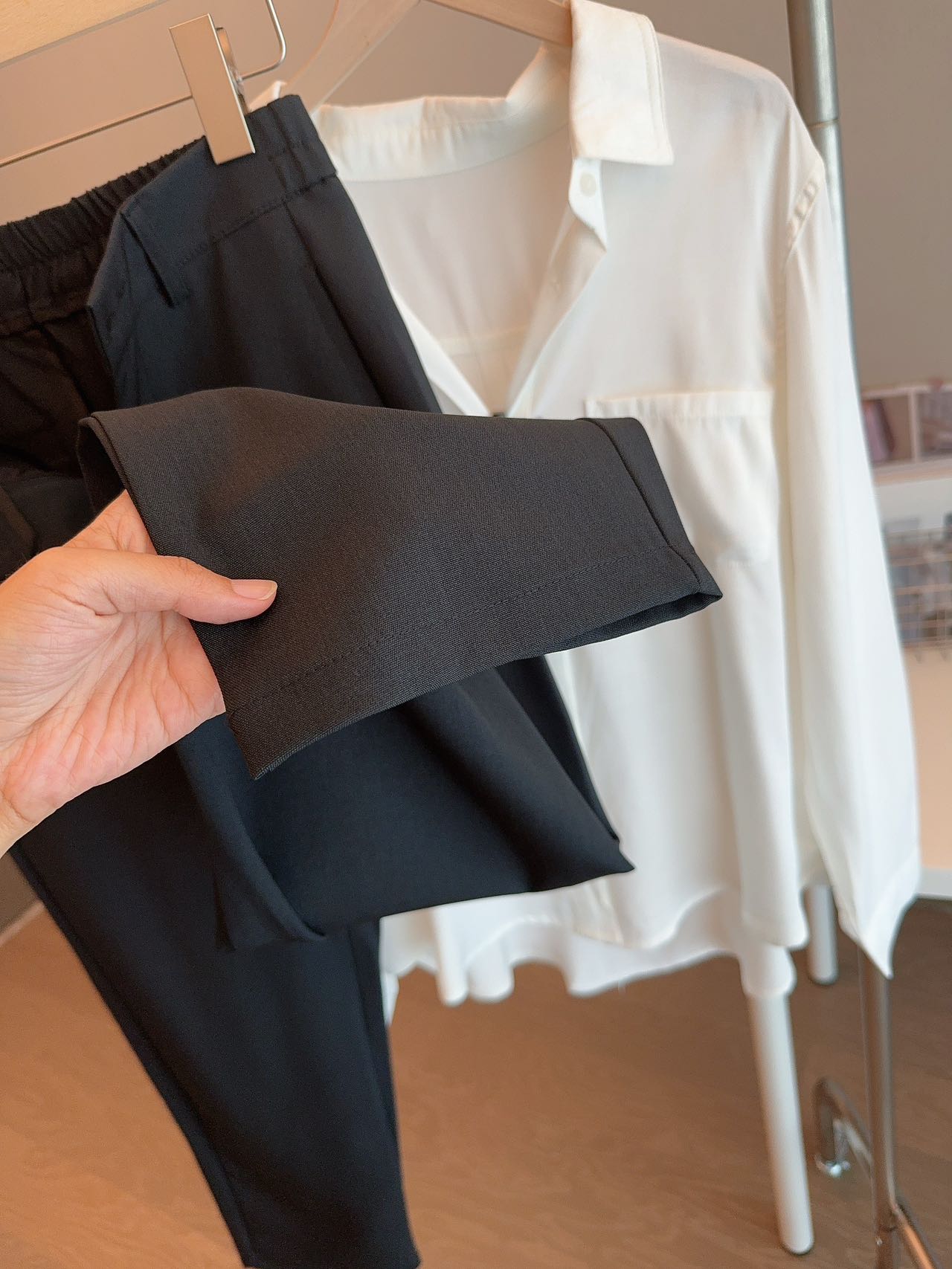 • 顺滑垂坠面料,抗皱易打理,久坐也挺括