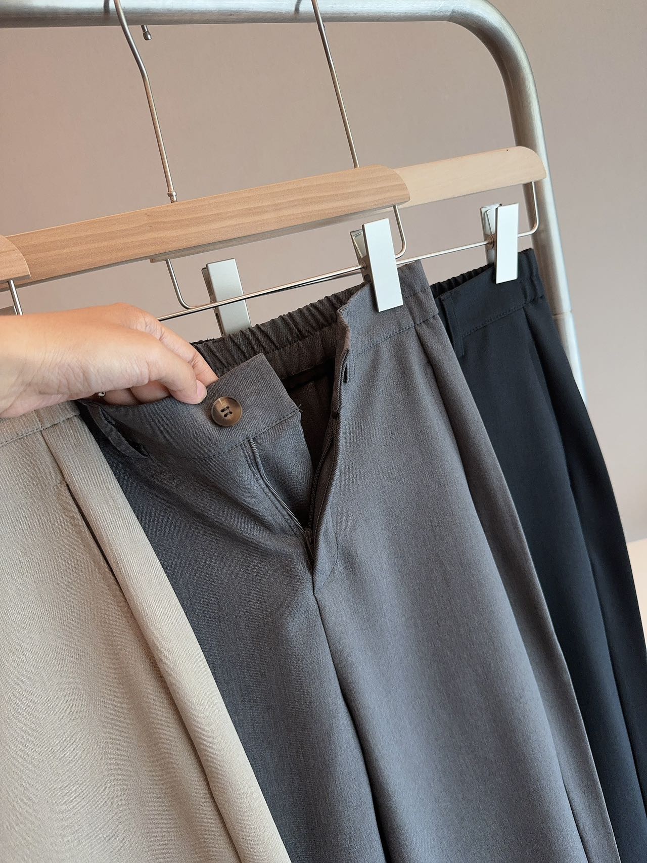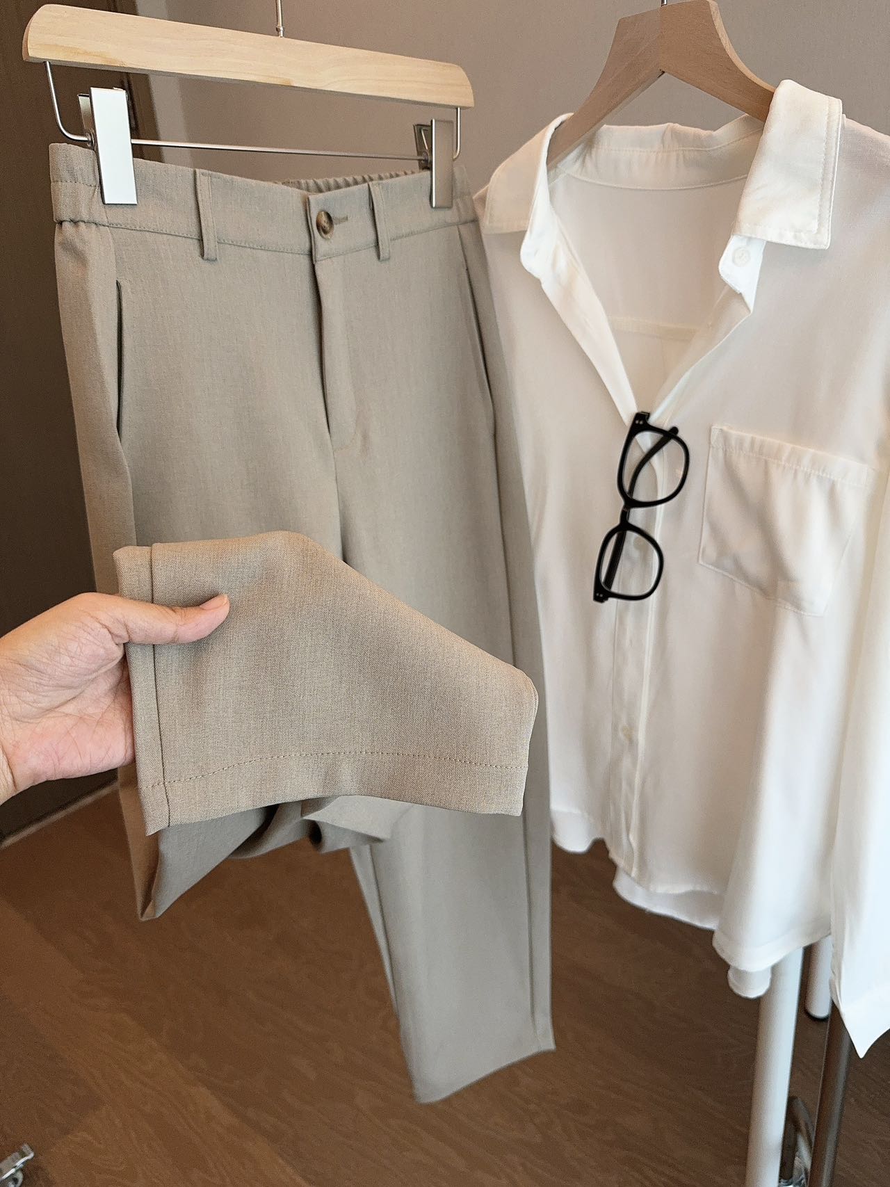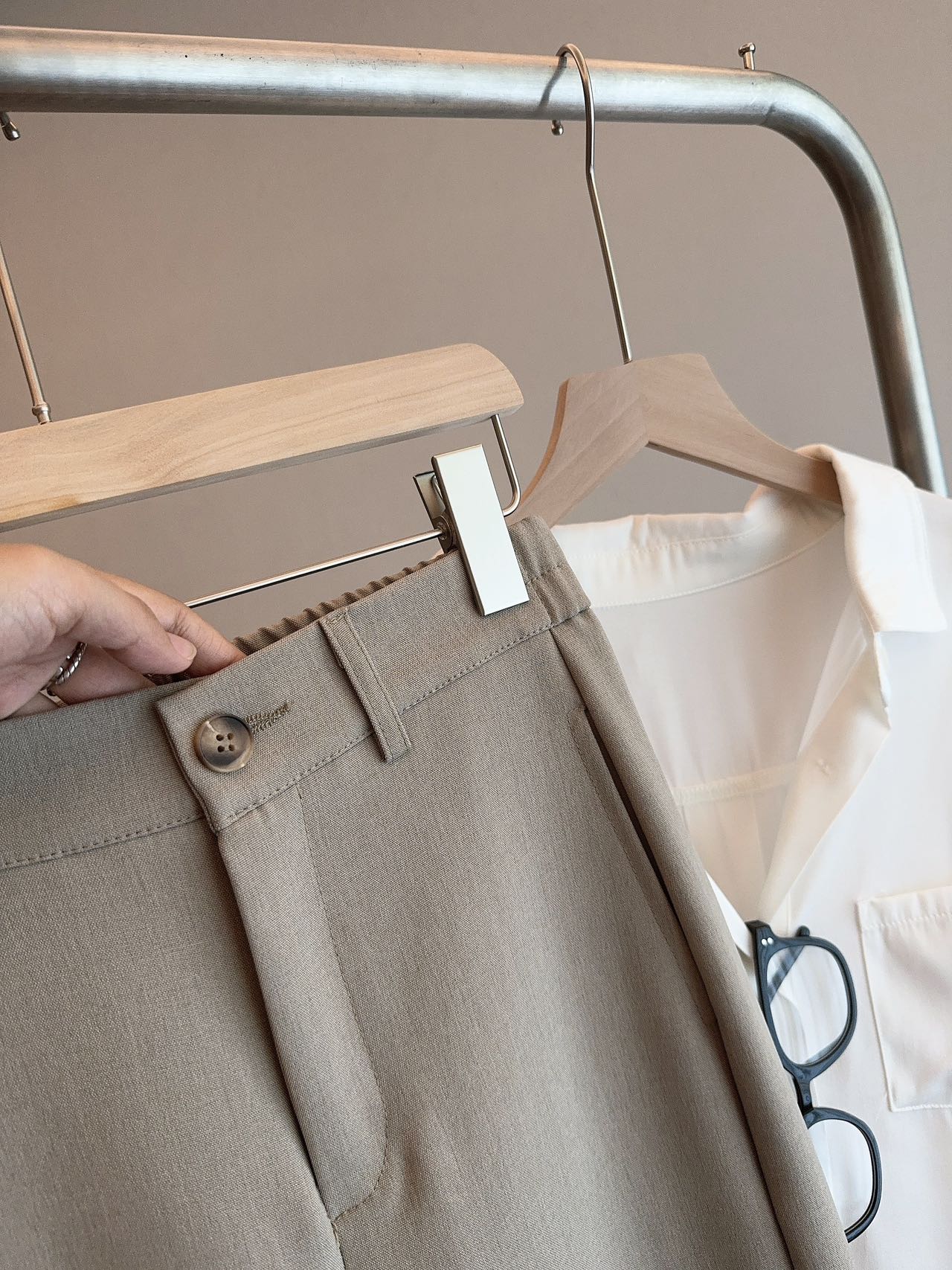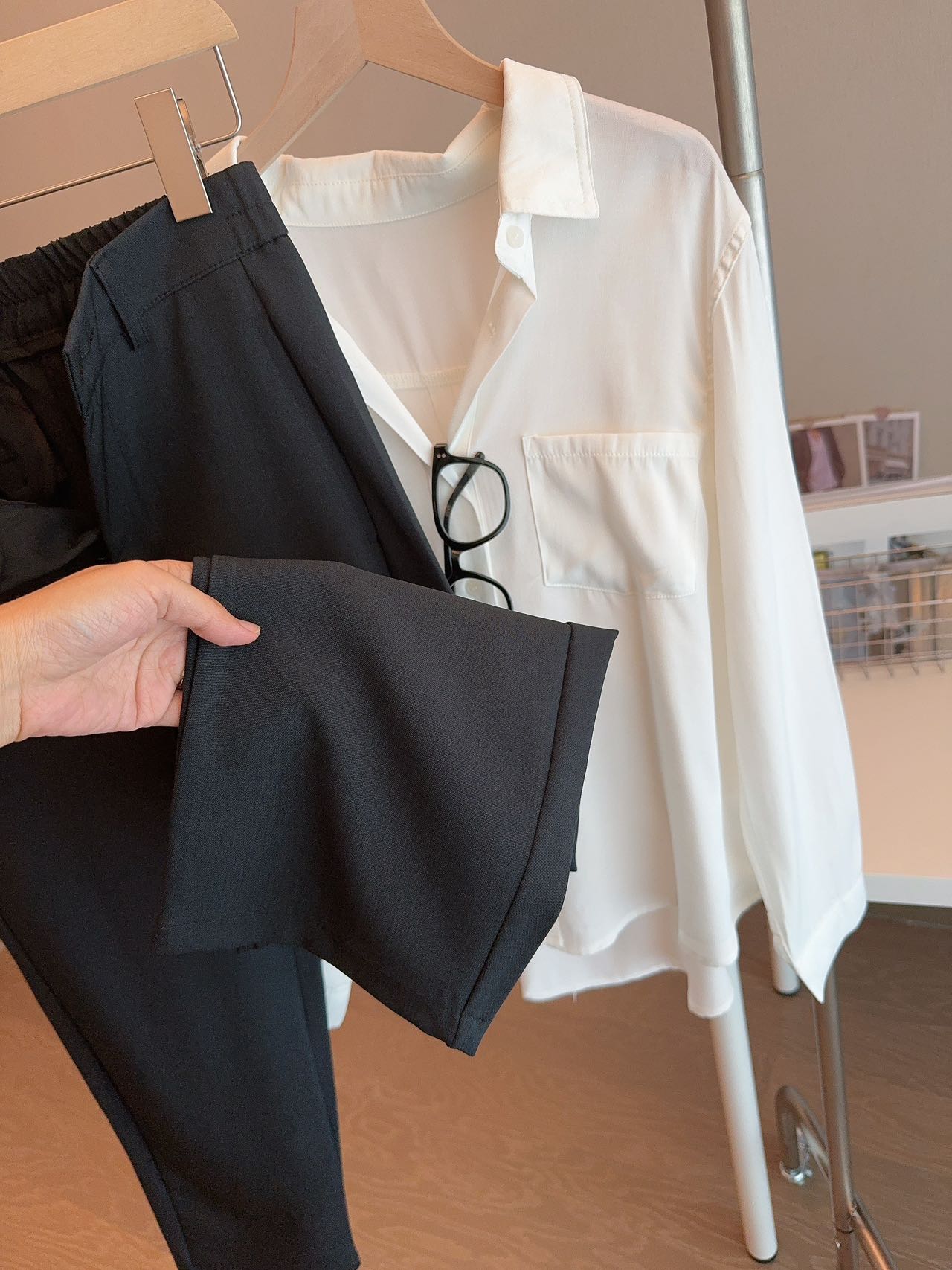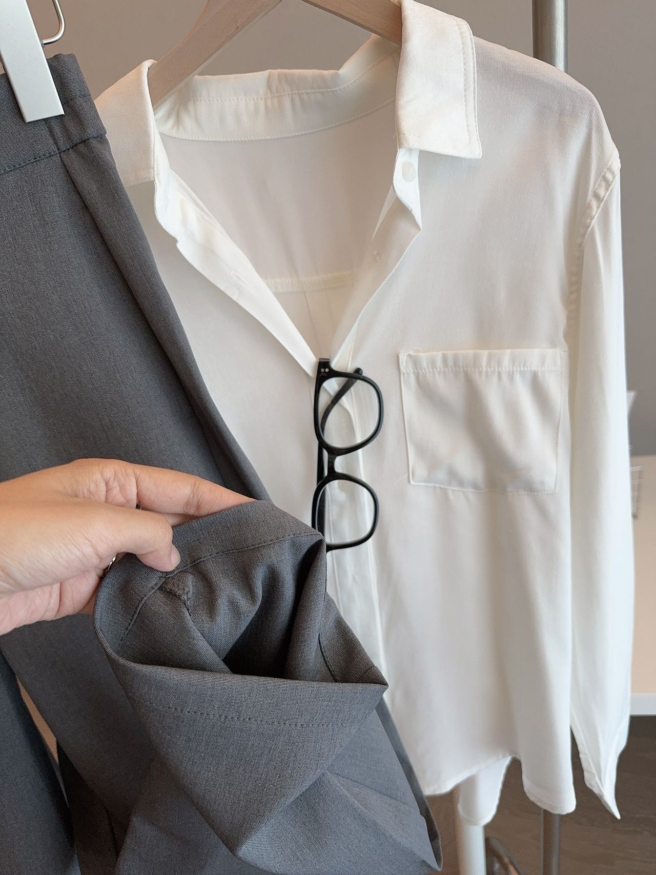 • 顺滑垂坠面料,抗皱易打理,久坐也挺括