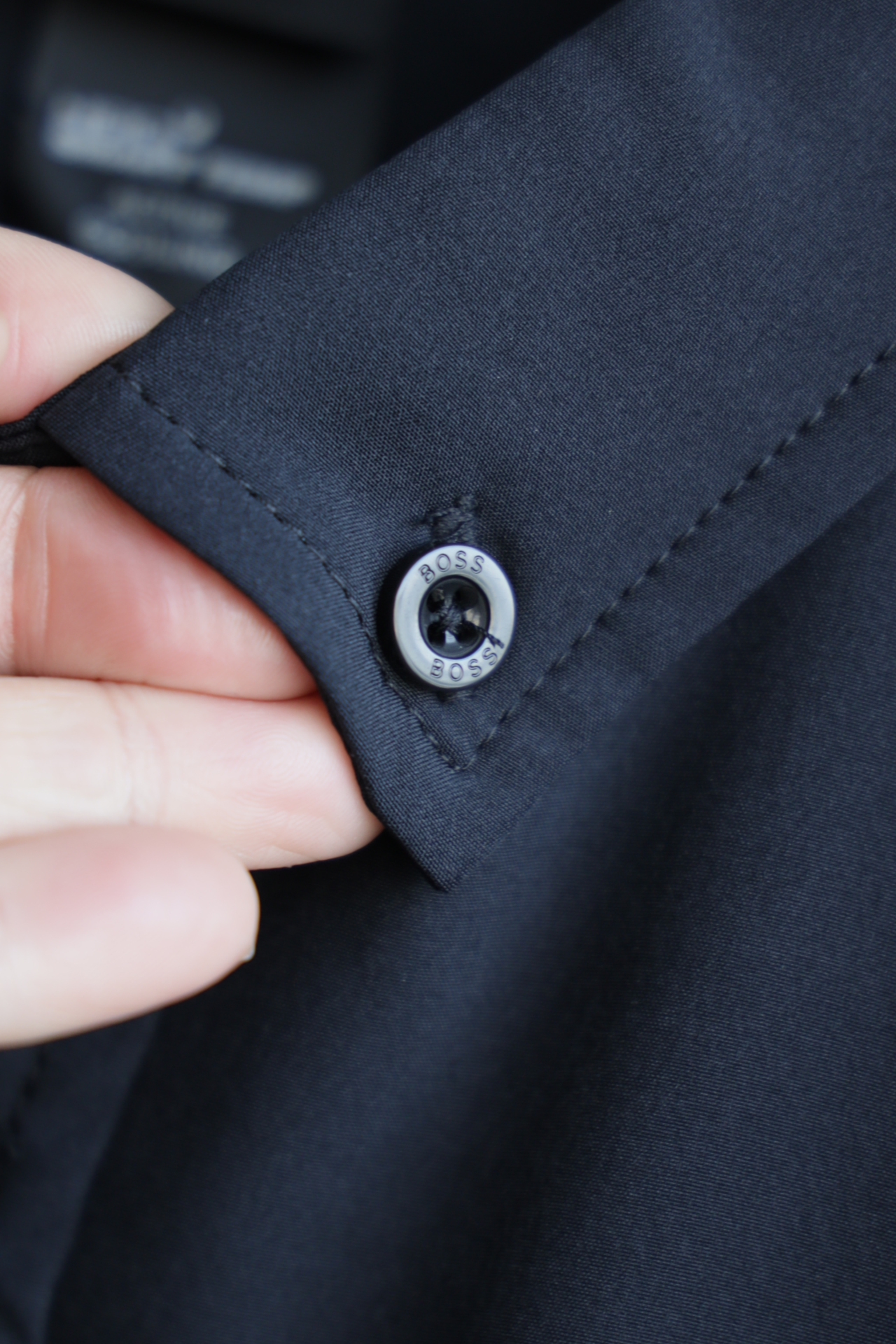 面料带少许弹性,合身版型,前短后长的设计 ,商务休闲随意切换