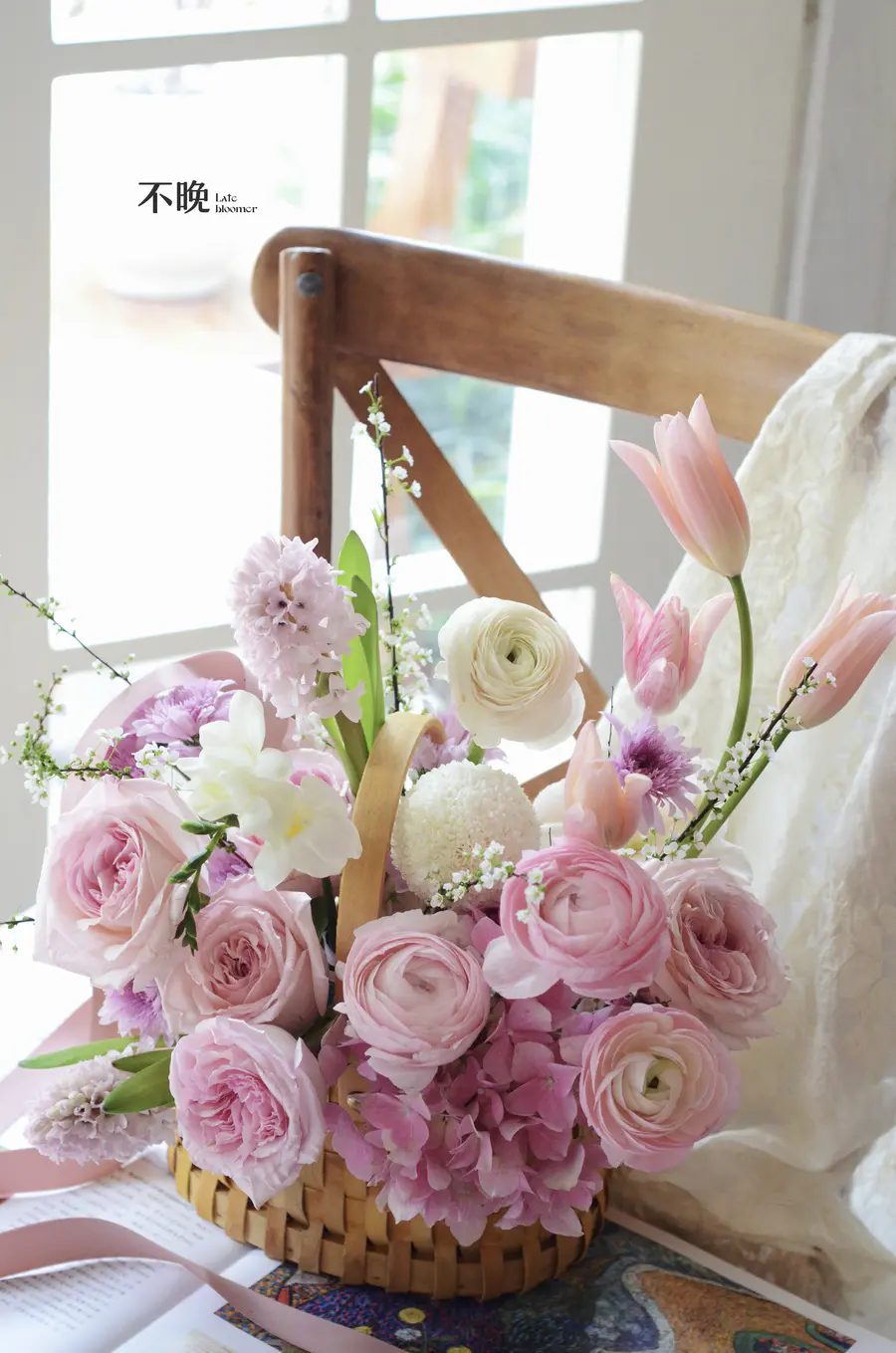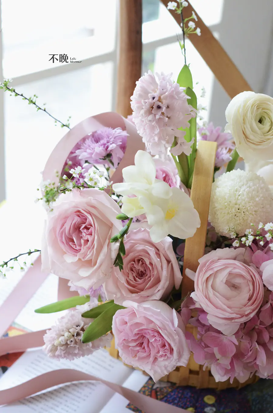 粉色系花篮搭配