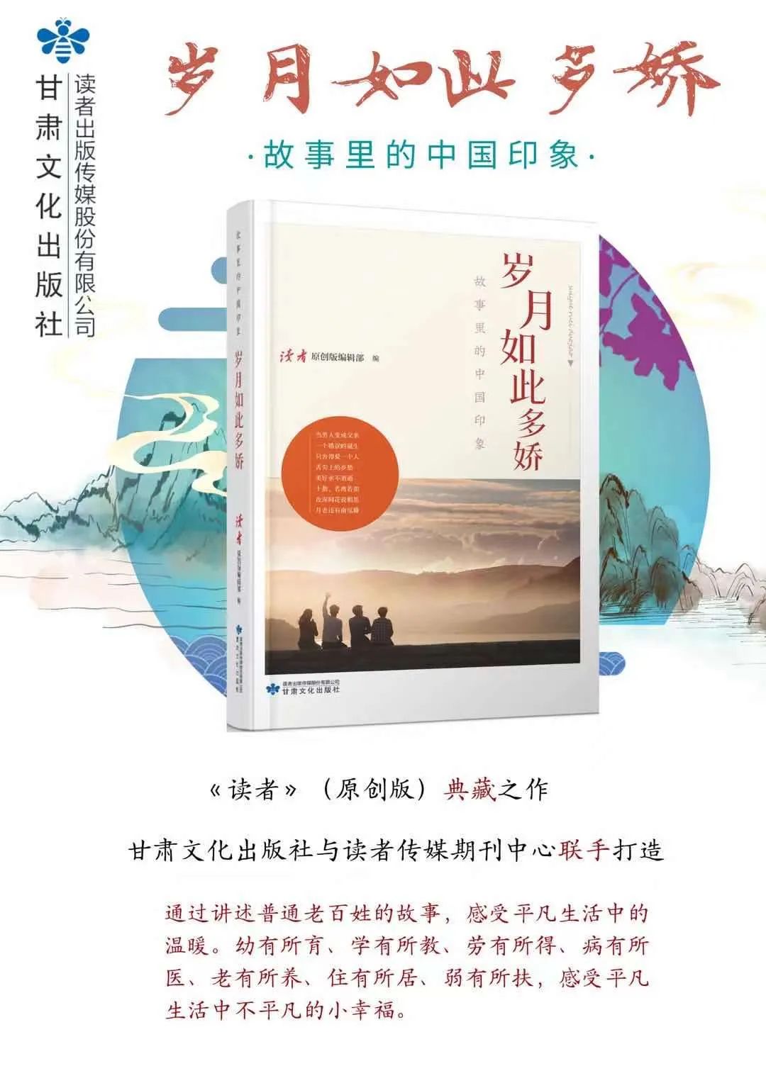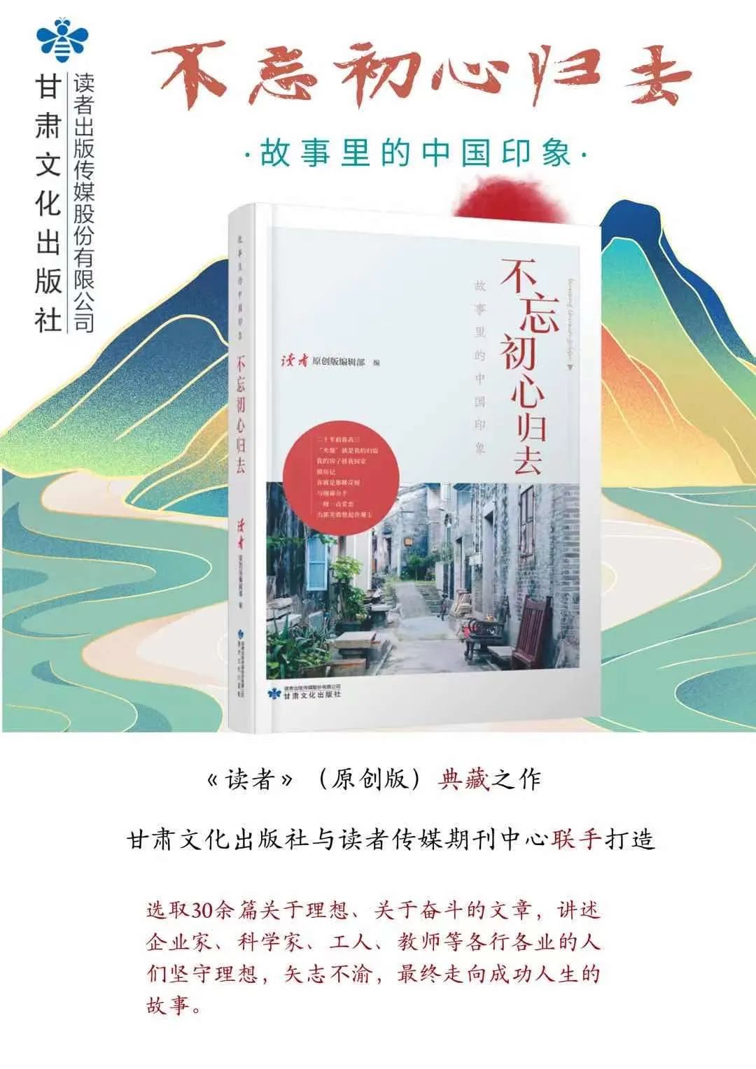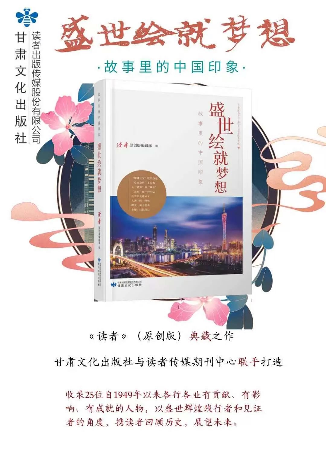 “ 故事里的中国印象”丛书由读者出版集团旗下甘肃文化出版社与读者传媒期刊中心携手打造,丛书以全方位展现中国共产党成立以来的辉煌成就为出发点,通过讲述大量充满温情、感人肺腑的中国好故事,大力宣传“时代楷模”“最美人物”等先进典型,全面展现全国人民齐心协力实现中华民族伟大复兴的历史画卷,展现在党的正确领导下,民族独立,国家富强,百姓安居乐业,中国正式踏上实现民族复兴梦想的伟大征程。