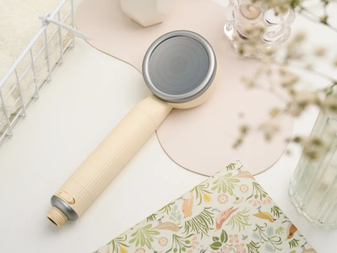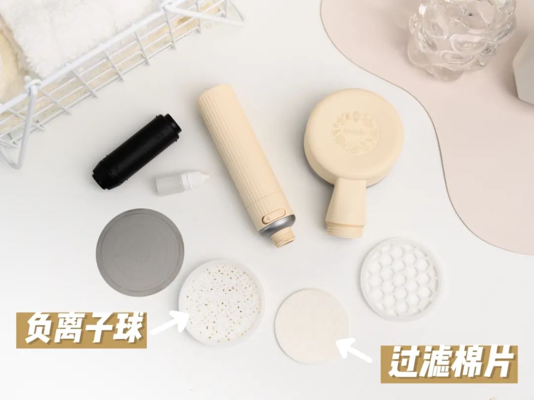 小活泉花洒自带美肤净水功能太贴心了。别看它个头不大,但却自带四重过滤保护,内含负离子球与过滤棉片,能过滤水中余氯、金属、细小颗粒与杂质。