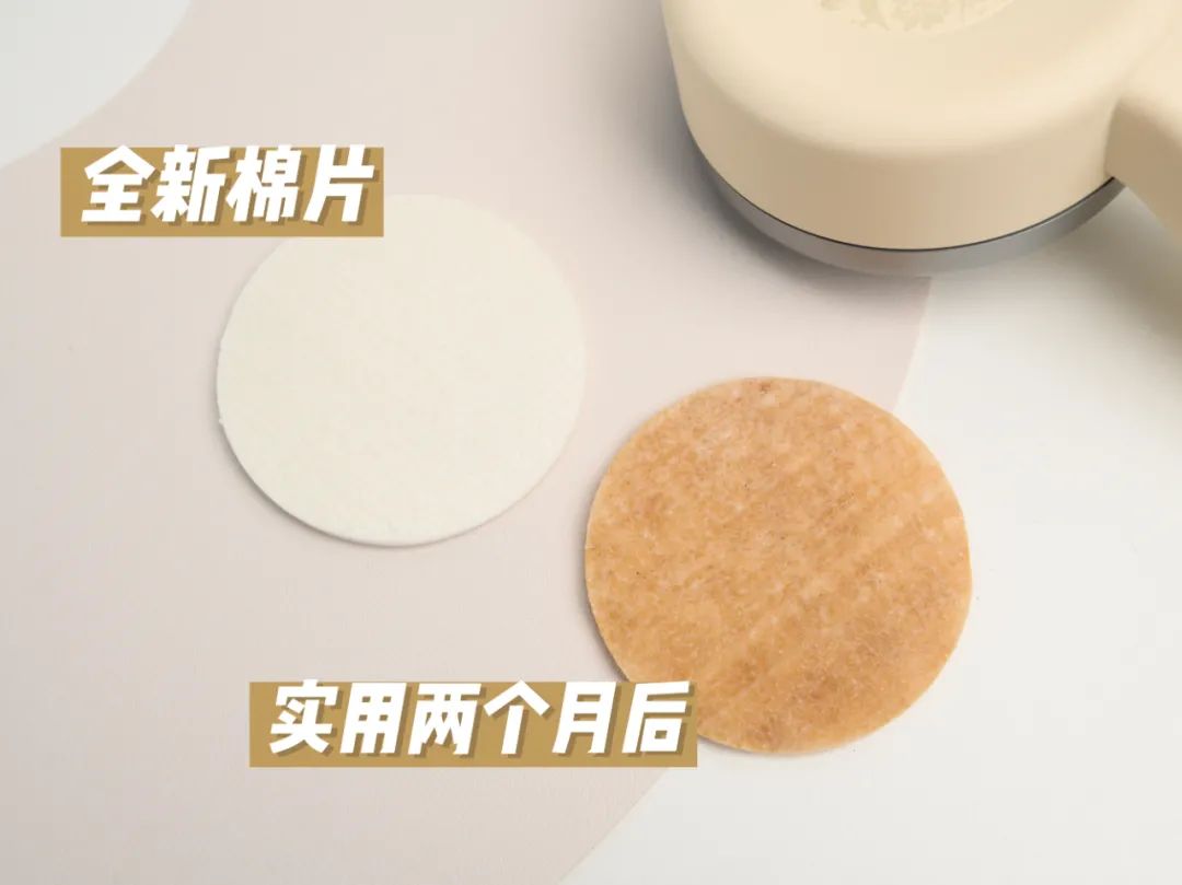 同事33用了两个月,拆开更换棉片吓个半死,使用后的棉片又黄又脏,还有不少细小颗粒吸附在上面,没想到平时看似干净无比的自来水,居然有这么多杂质!