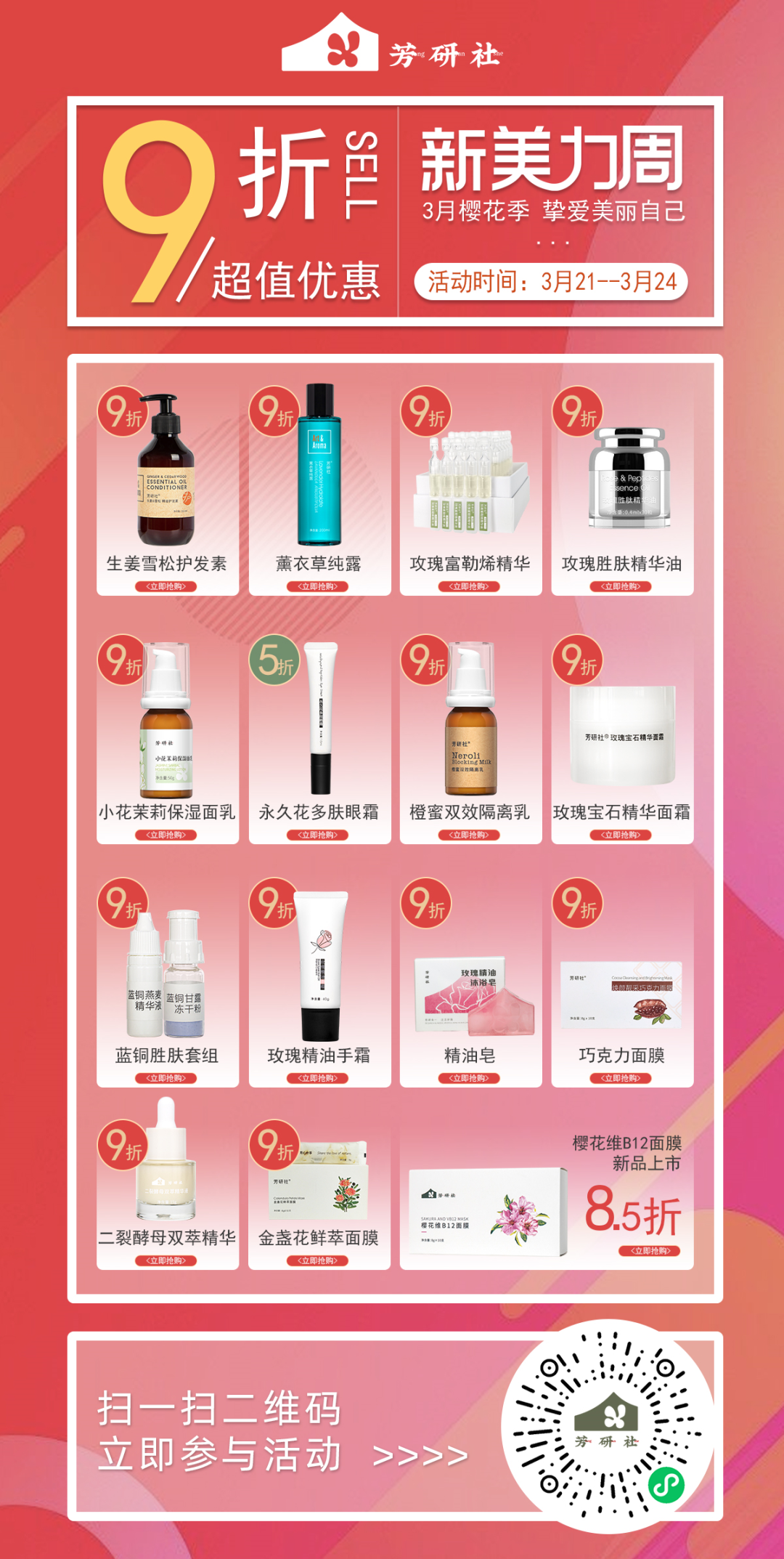 1、樱花面膜8.5折优惠叠加多盒优惠,活动时间3月21日——3月27日;