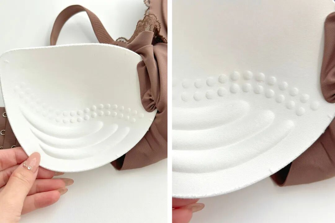 它既没有钢圈,就靠着W型果冻条软支撑和四周「结构」实现舒适和聚拢二合一。