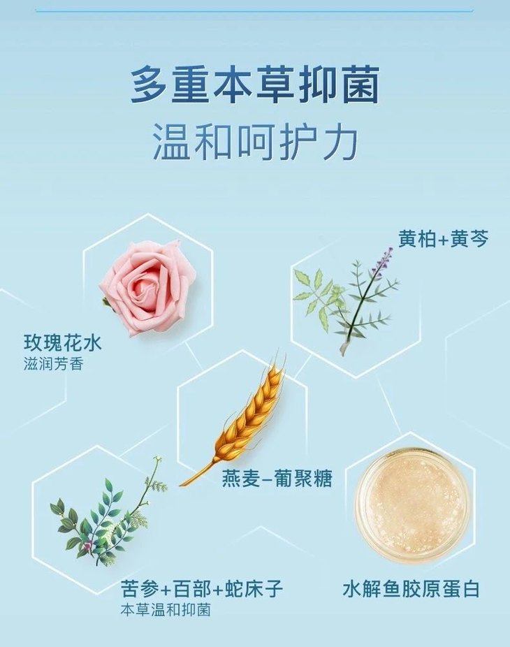 益生菌+黄苓、苦参等多种植物萃取精华,清洁平衡私密肌玫瑰花水,净味清新