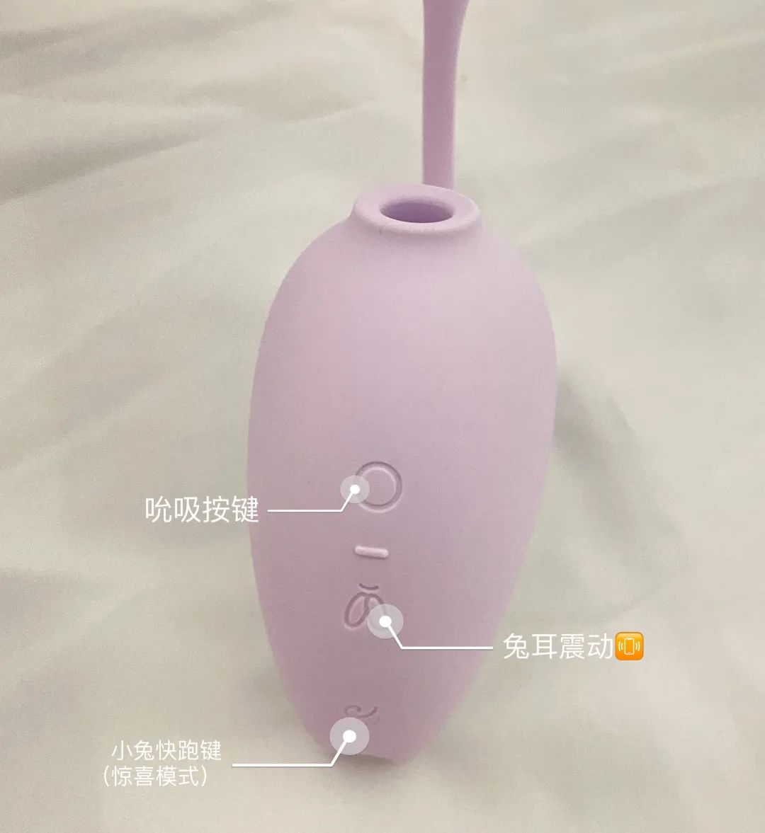 兔耳可震动入体的,兔尾是一个可拆卸的防尘塞,打开之后就是吮吸口。
