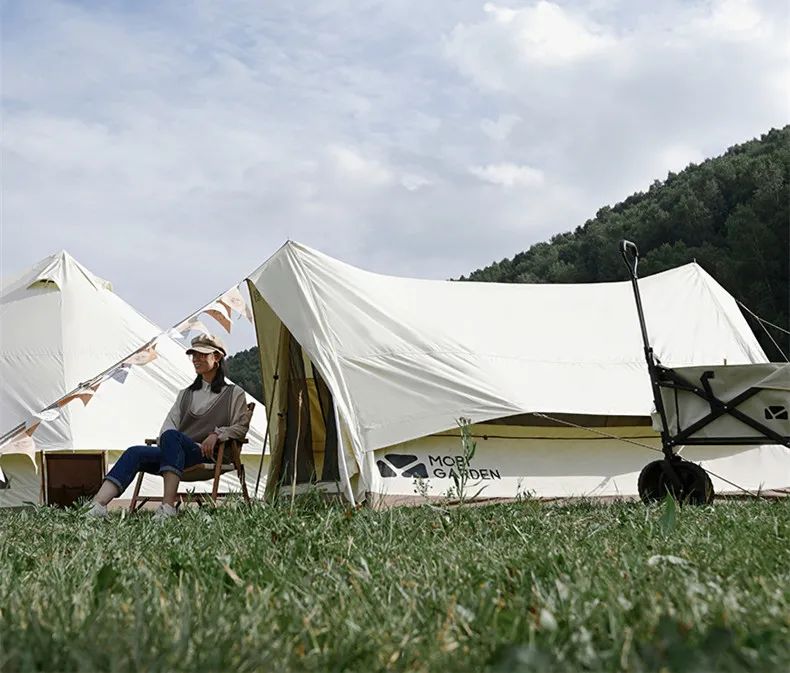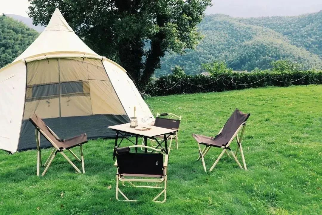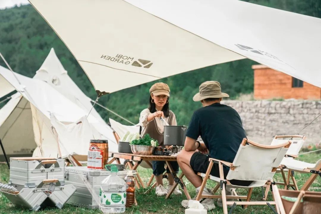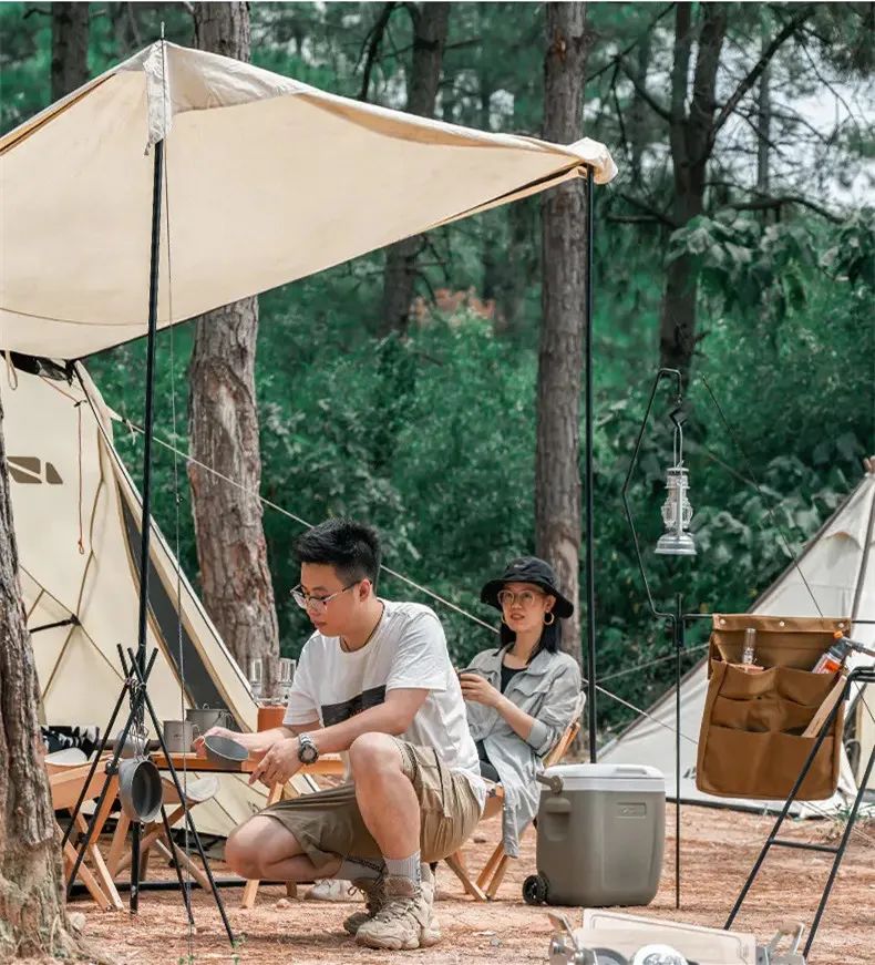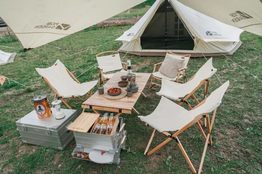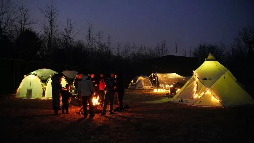 搭起帐篷,摆上座椅、炉具,点起篝火......