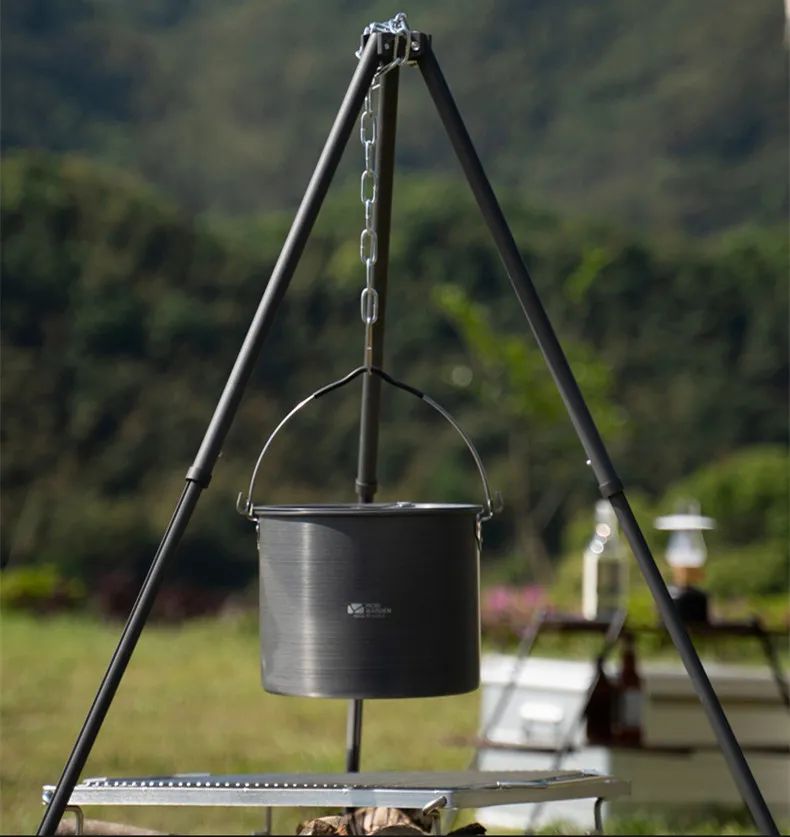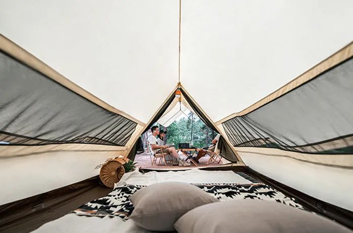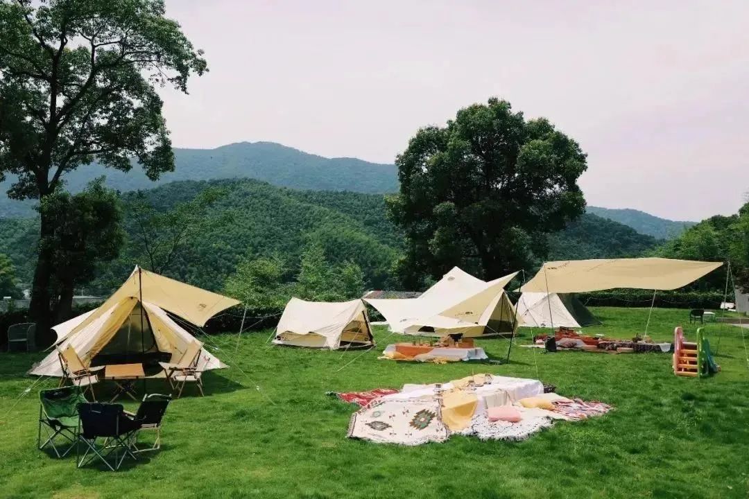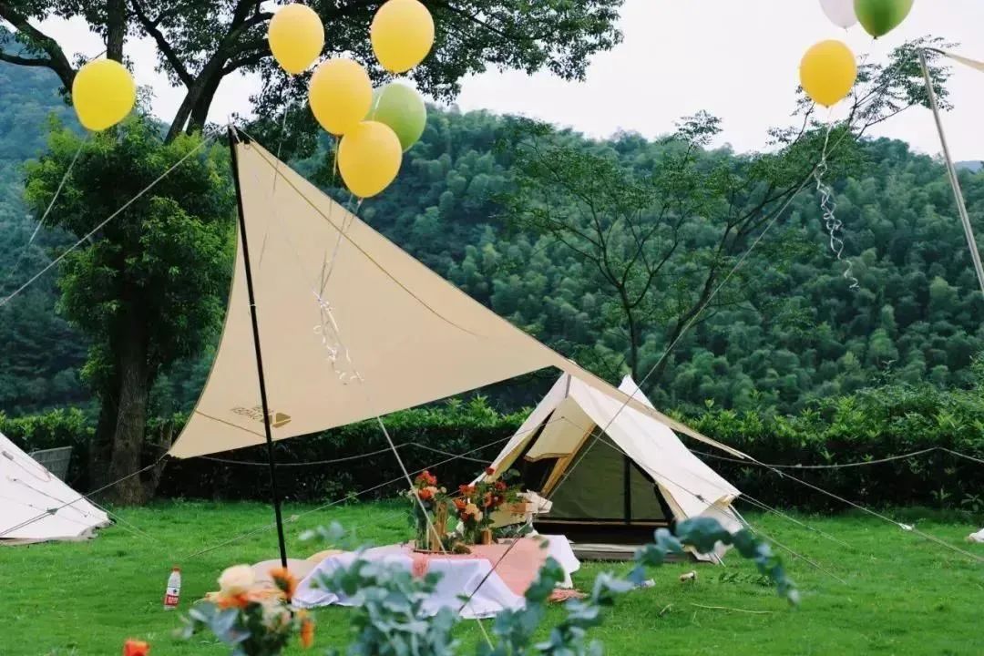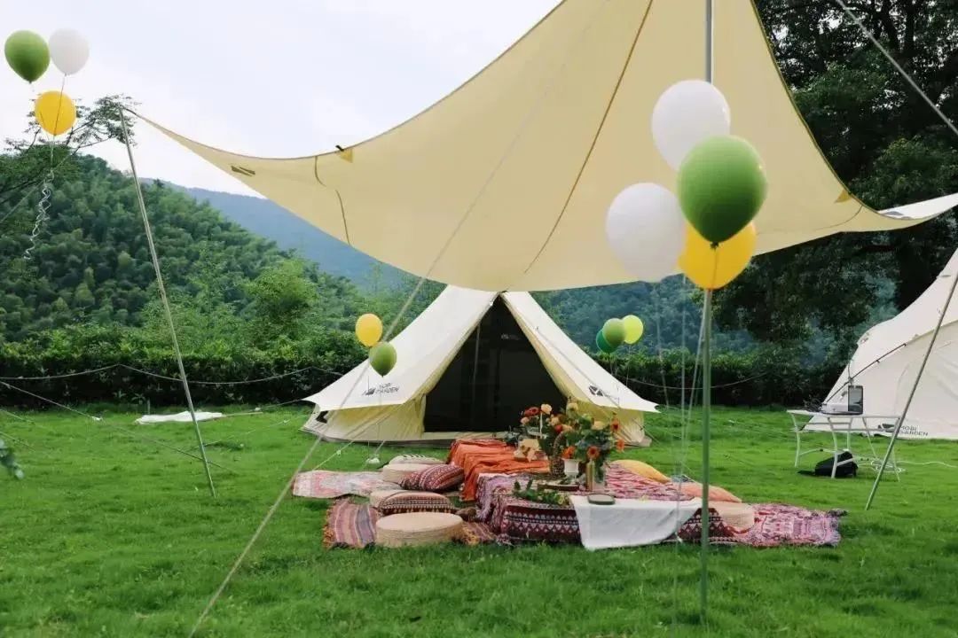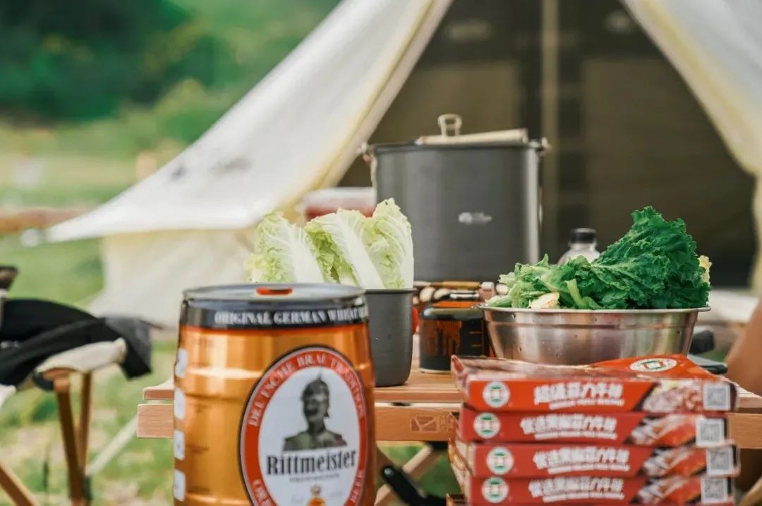 搭起帐篷,摆上座椅、炉具,点起篝火......