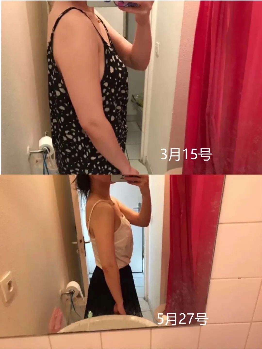 @陈媛:之前手臂非常的粗壮,像吊带、无袖裙这些都没办法穿,后来在薇娅的直播间看到同仁堂这款塑身霜,从3月中旬开始用的,到5月底的时候,对比太过于明显了!