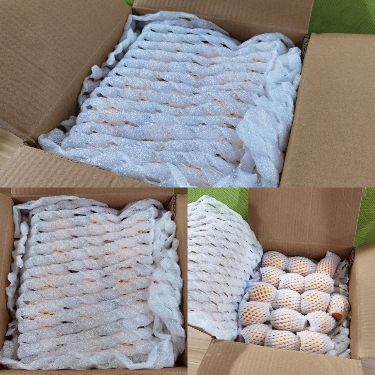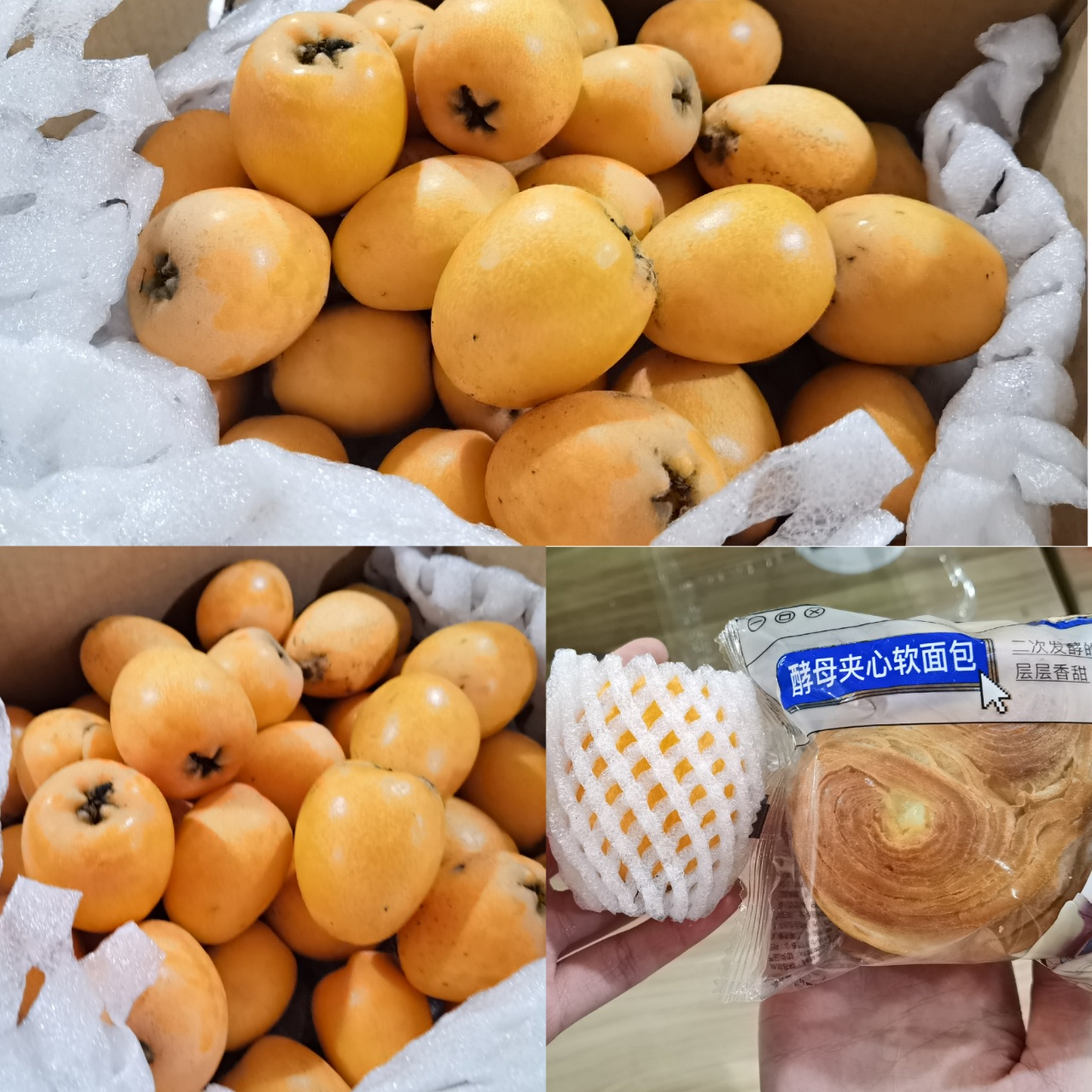 ⭕每颗枇杷用泡沫网包了一层,全部完好无损