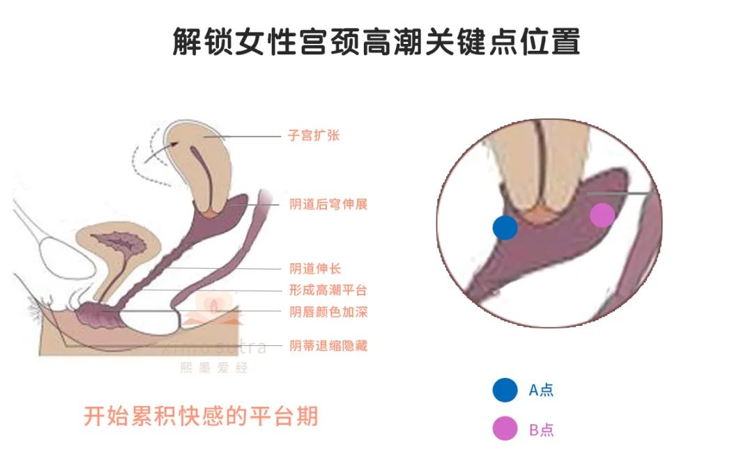 当刺激到这个部位时,女性会体验到极深的快感,有些女性的AB点甚至比音蒂还要敏感,持续刺激还会引发“宫颈口不规则收缩”的宫颈高巢。