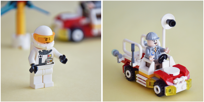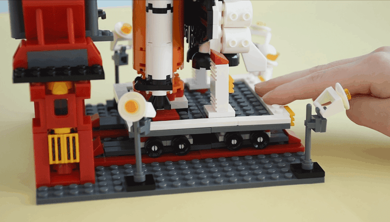 不只是单一的飞机和火箭,这个发射中心包含发射指挥中心、发射平台、火箭发射器、航天飞机、巡检车等,还有4个宇航员人仔。