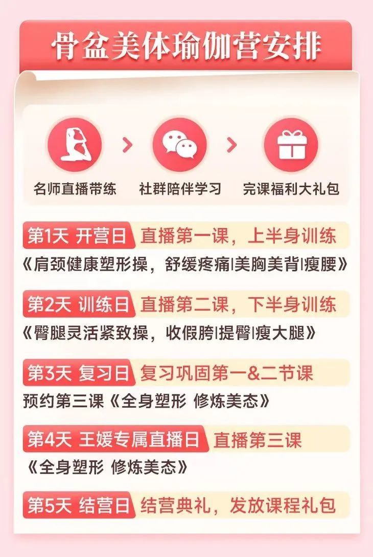 王媛就告诉大家:骨盆瑜伽是女性的福音,是自己切身体会骨盆瑜伽的好处,才决定让更多被身材、体态、健康困扰的人知道它并且一起练起来。