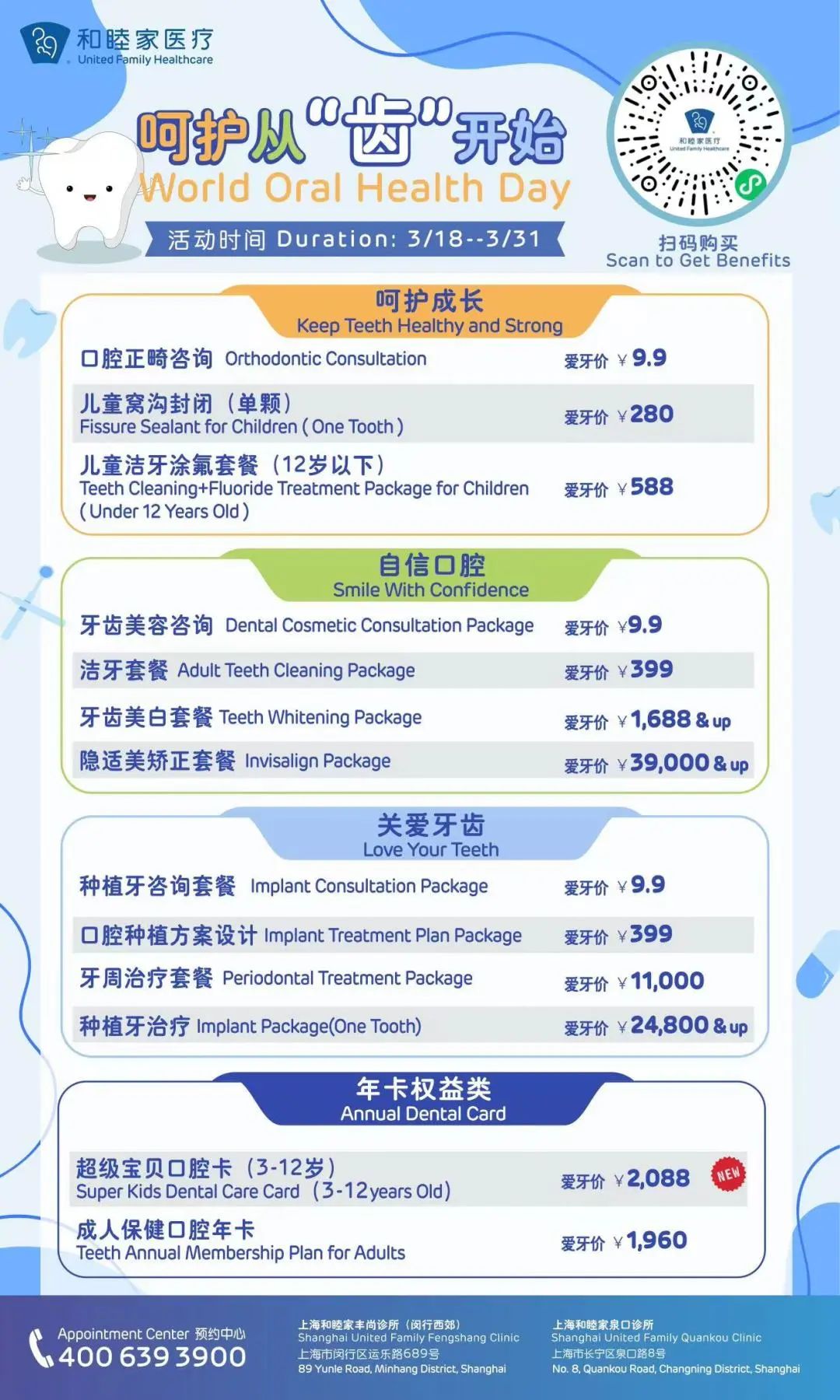 和睦家超级宝贝口腔卡新品上线!多种口腔产品限时折扣!