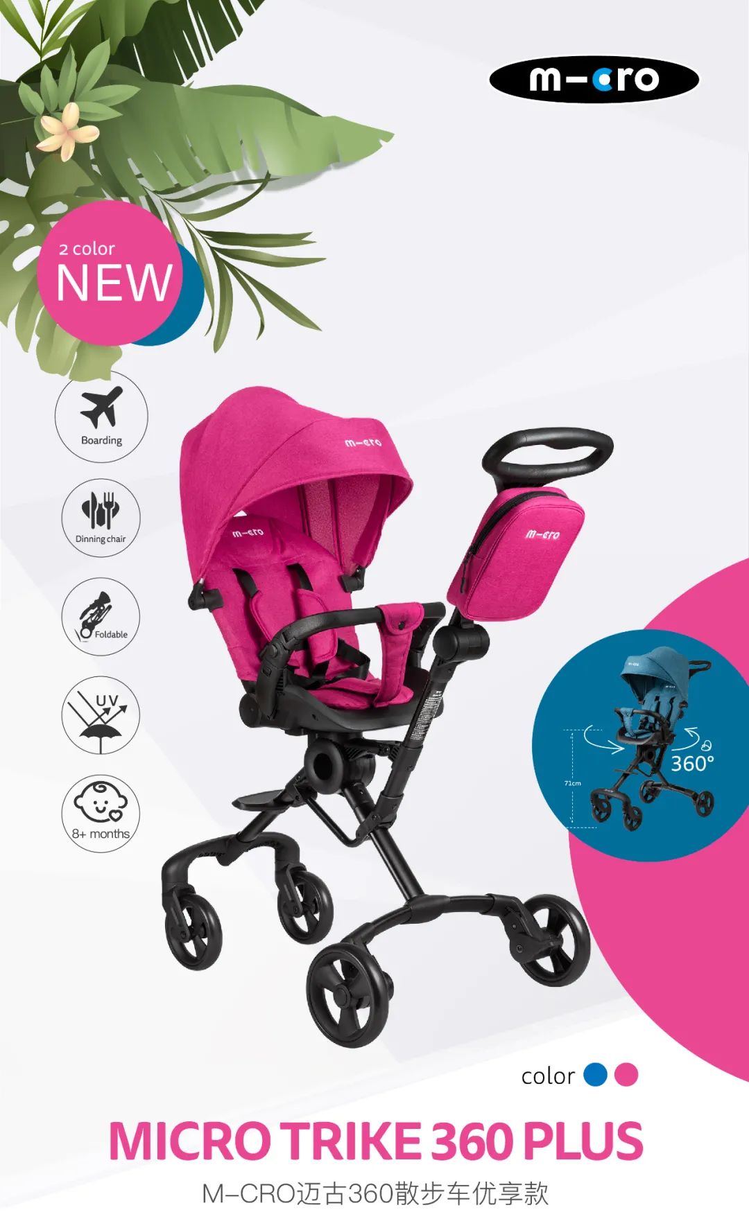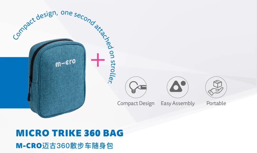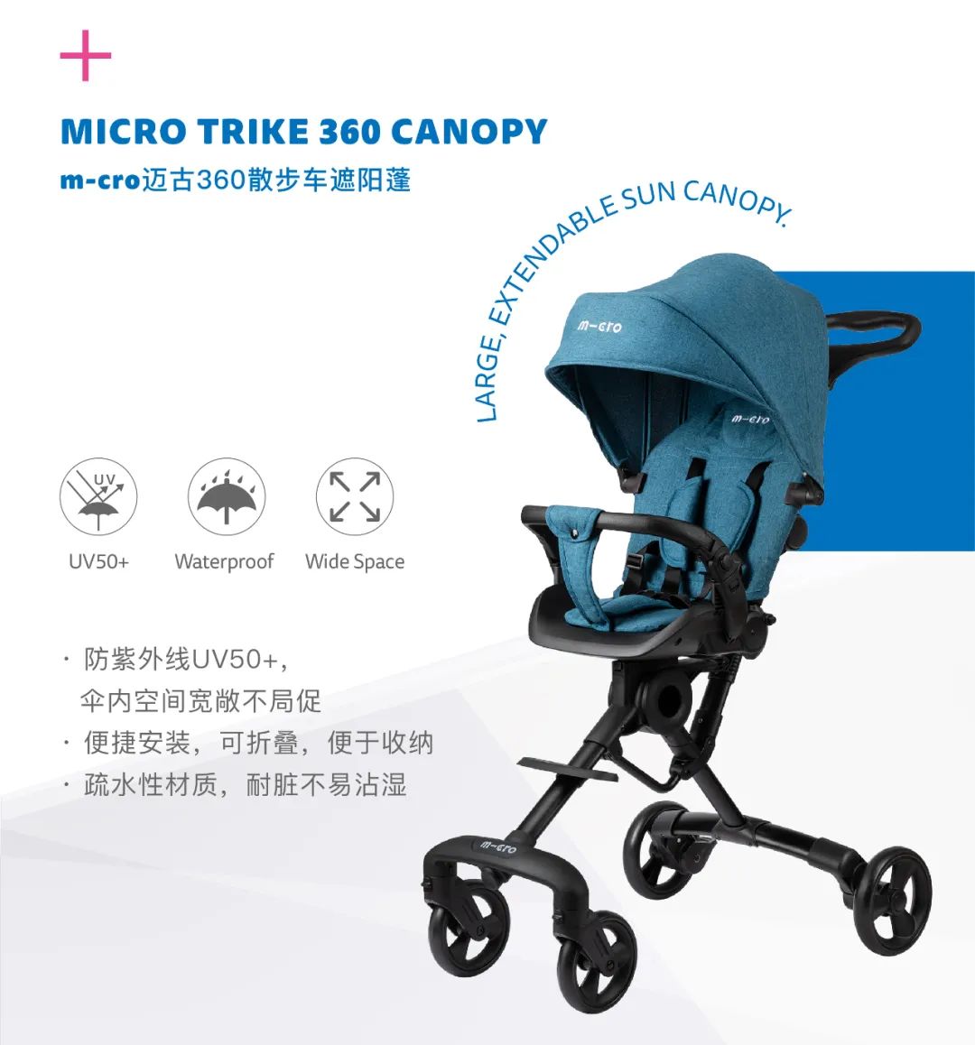升级后的m-cro迈古360散步车优享款配备以下配件,其中遮阳蓬护脚垫以及随身包为可选配件需单独购买。