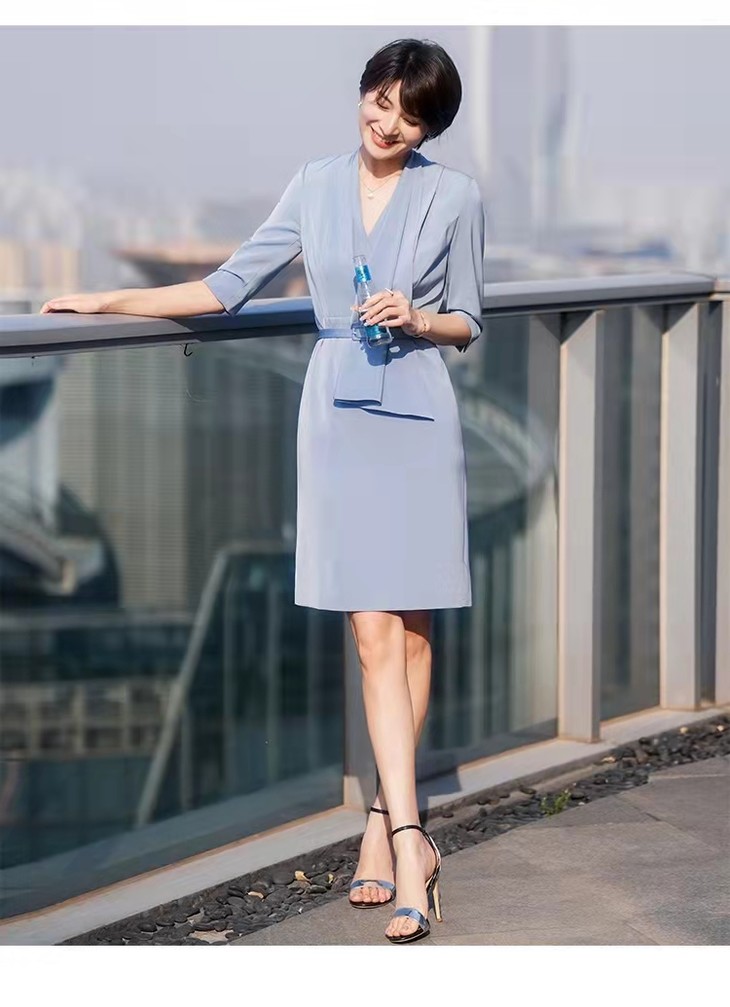 IWY浅蓝色连衣裙职业时尚显瘦高级感