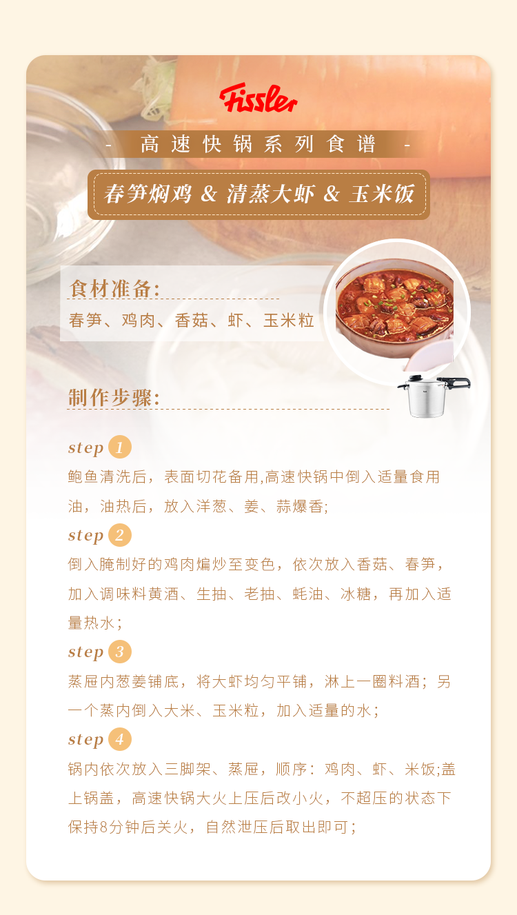 快锅食谱-春笋焖鸡 & 清蒸大虾 & 玉米饭