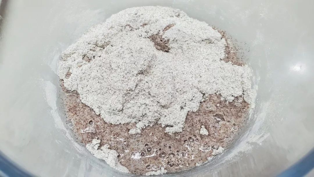 2、筷子搅拌至絮状,揉搓成团,根据杂粮吸水性不同可适量增减水量,醒发10-15min