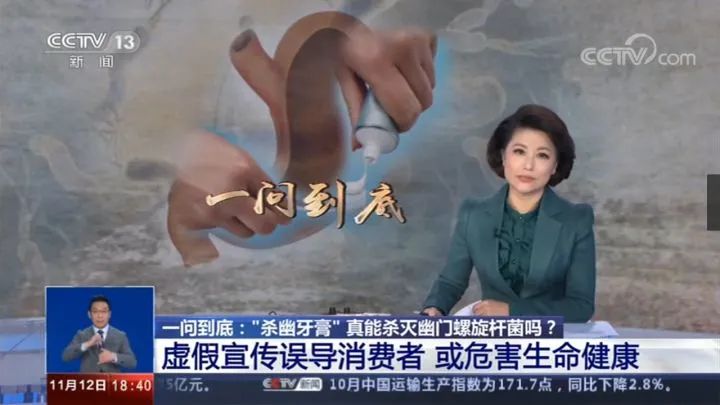 中国科协“源新闻”专家库成员,中国法学会消费者权益保护法研究会副秘书长陈音江表示,广告法中规定除了医疗器械、药品以外,禁止任何广告涉及到治疗疾病的功效,不可以使用带有医疗性的用语。杀幽牙膏宣传可以预防、抵抗幽门螺旋杆菌,那么真正感染幽门螺旋杆菌的患者可能就会误以为真,耽误了病情的治疗,从而影响到生命安全。