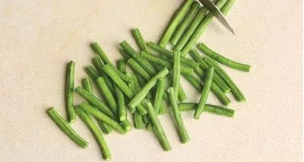 1. 豇豆洗净掐去两头, 切成0.5cm长的小段。