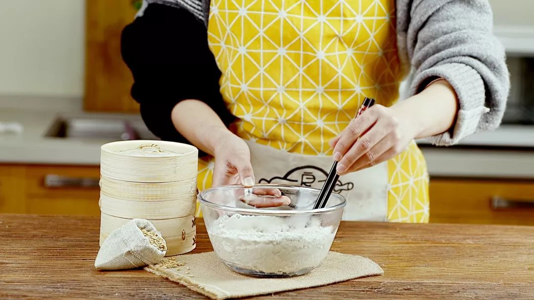 3、使用筷子搅拌成絮状,然后揉成光滑的面团