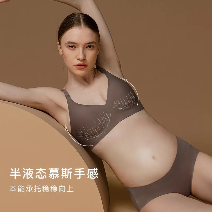 这款内衣,布料非常的柔软,而且是无钢圈的设计,亲肤度非常的好,当我们在孕后期胸部膨胀的厉害的时候,都不会觉得有粗糙的摩擦感,而且穿上之后胸型也是比较挺的,和胸部也很贴合,在动的时候下围也不会往上走。