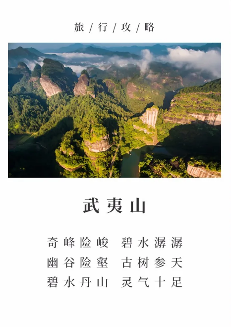 曾被《孤星旅游指南》评为“全球十大最幸福地方”之一。武夷山素有“碧水丹山”的称号,奇峰险峻,碧水潺潺,幽谷险壑,古树参天,“奇、秀、美、古”的动人美景让人叹为观止;这里独特的丹霞地貌,从古至今吸引了无数文人墨客留下动人篇章;武夷山还具有丰富的历史文化遗产,道教传说、悬棺文化让这里的山水更多了一分灵秀之气。』