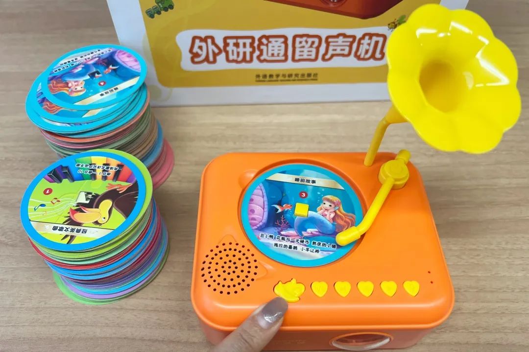 留声机音质清晰悦耳,由专业的老师录制普通话和英语,声情并茂,绘声绘色。不仅有背景配乐,连不同的人物都有各自的声音。