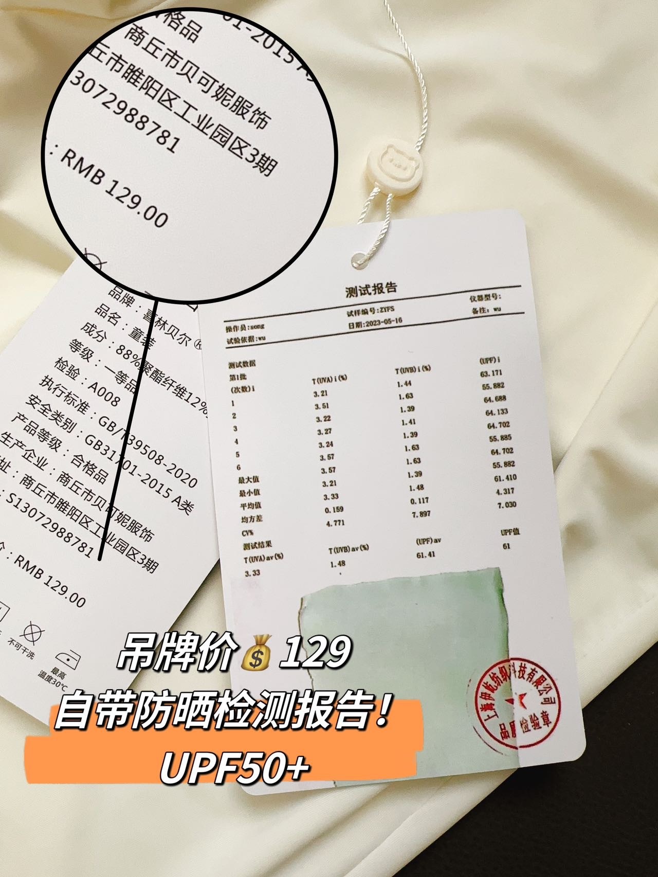 UPF50+还自带质检报告