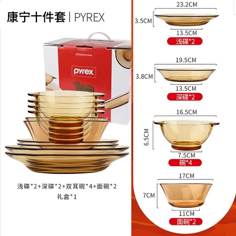 康宁百丽餐具10件套!晶尊系列琥珀色,琥珀色,硼玻璃钢化可进微波炉,烤箱,高颜值,高品质!安全健康,耐冷耐热!