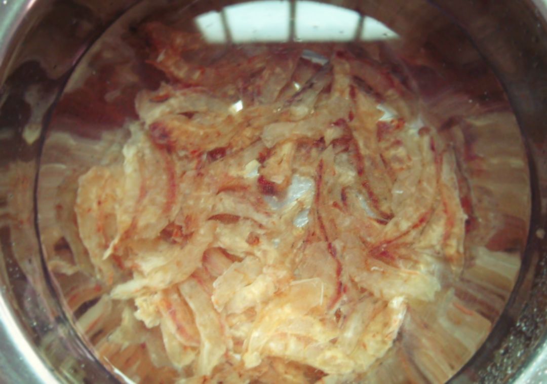 3、将干虾仁冲洗干净,在温水中浸泡待用;