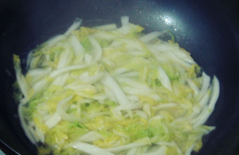 1、将白菜切成条待用;
