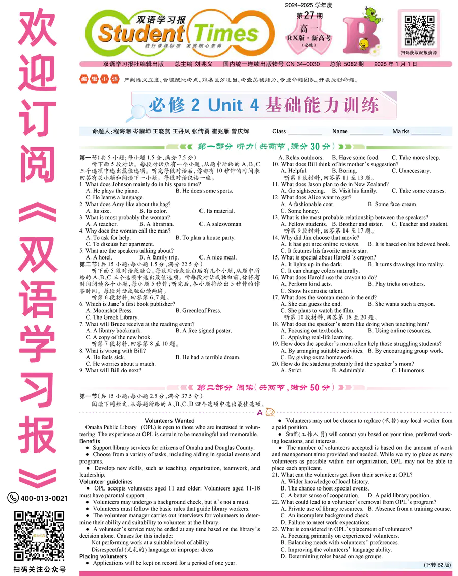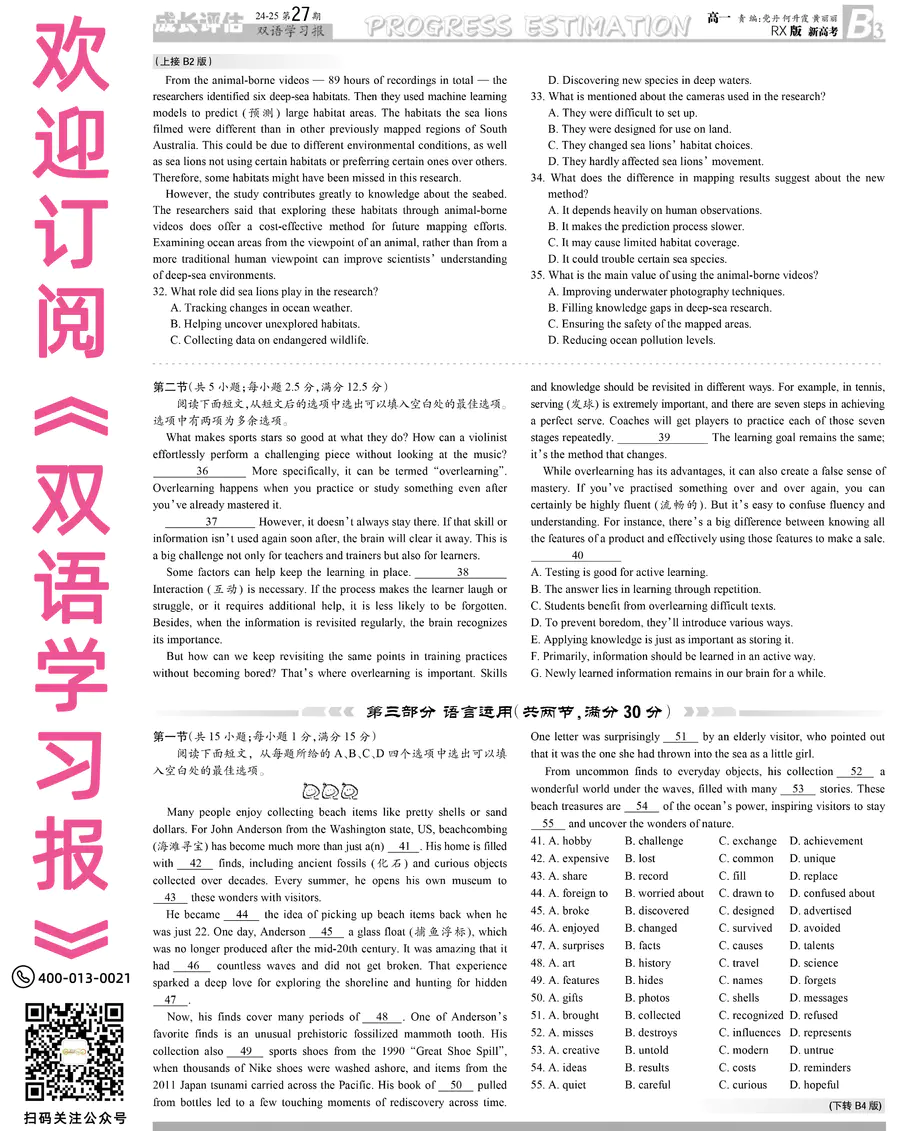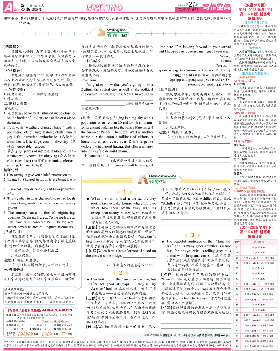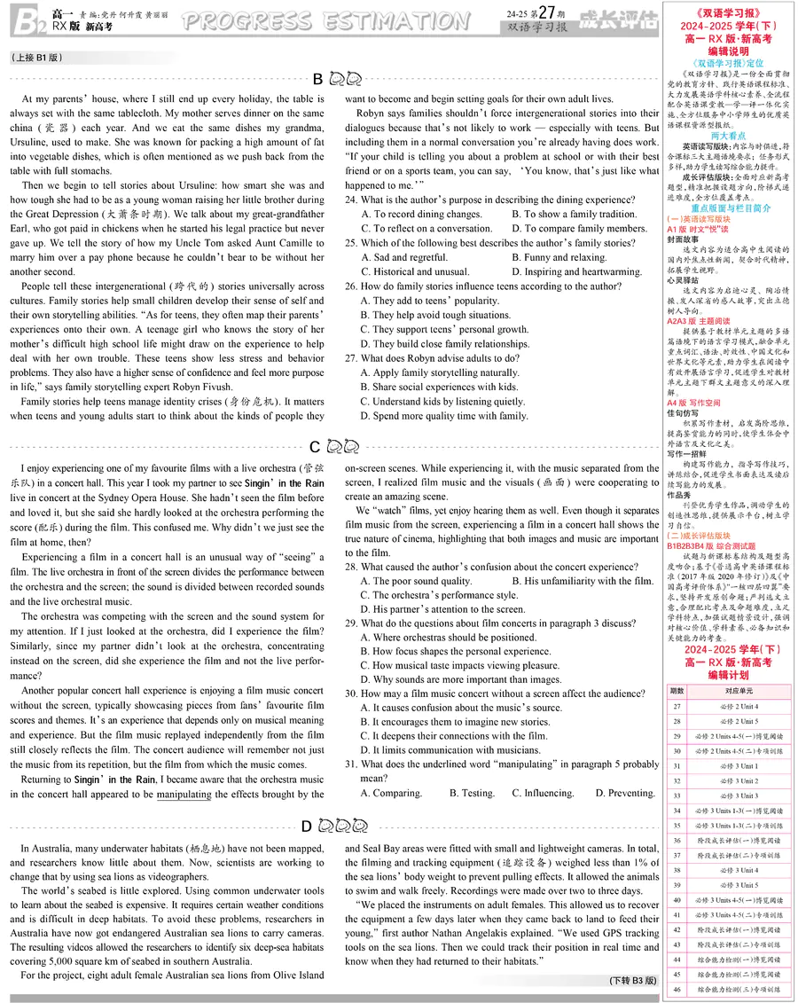 高中英语样报 高一 RX版 新高考 第27期