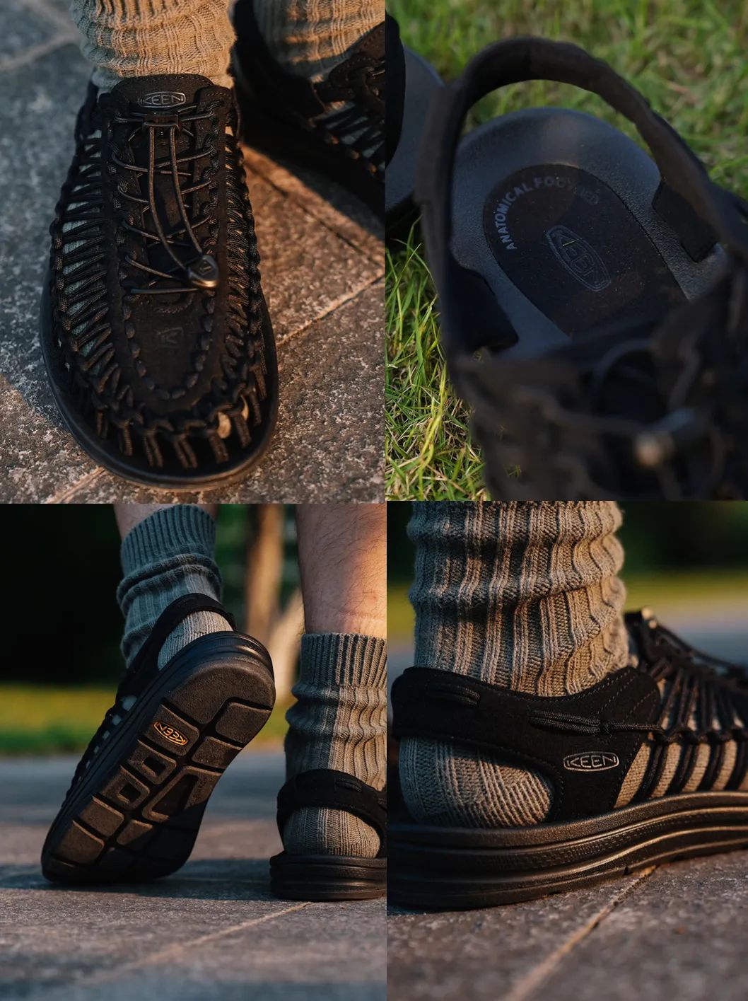 KEEN注重每一双鞋子的做工和材质,UNEEK也不例外,看似简单的编织结构,却有着合脚舒适的穿着体验,整体设计符合人体力学,可以给足底足够的支撑和保护。