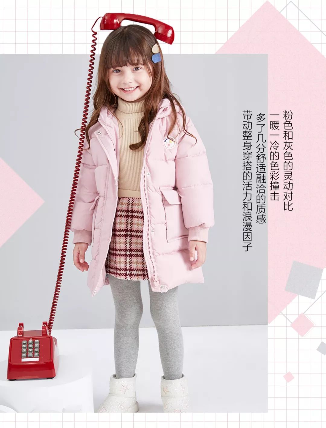 用粉色羽绒注入温柔
