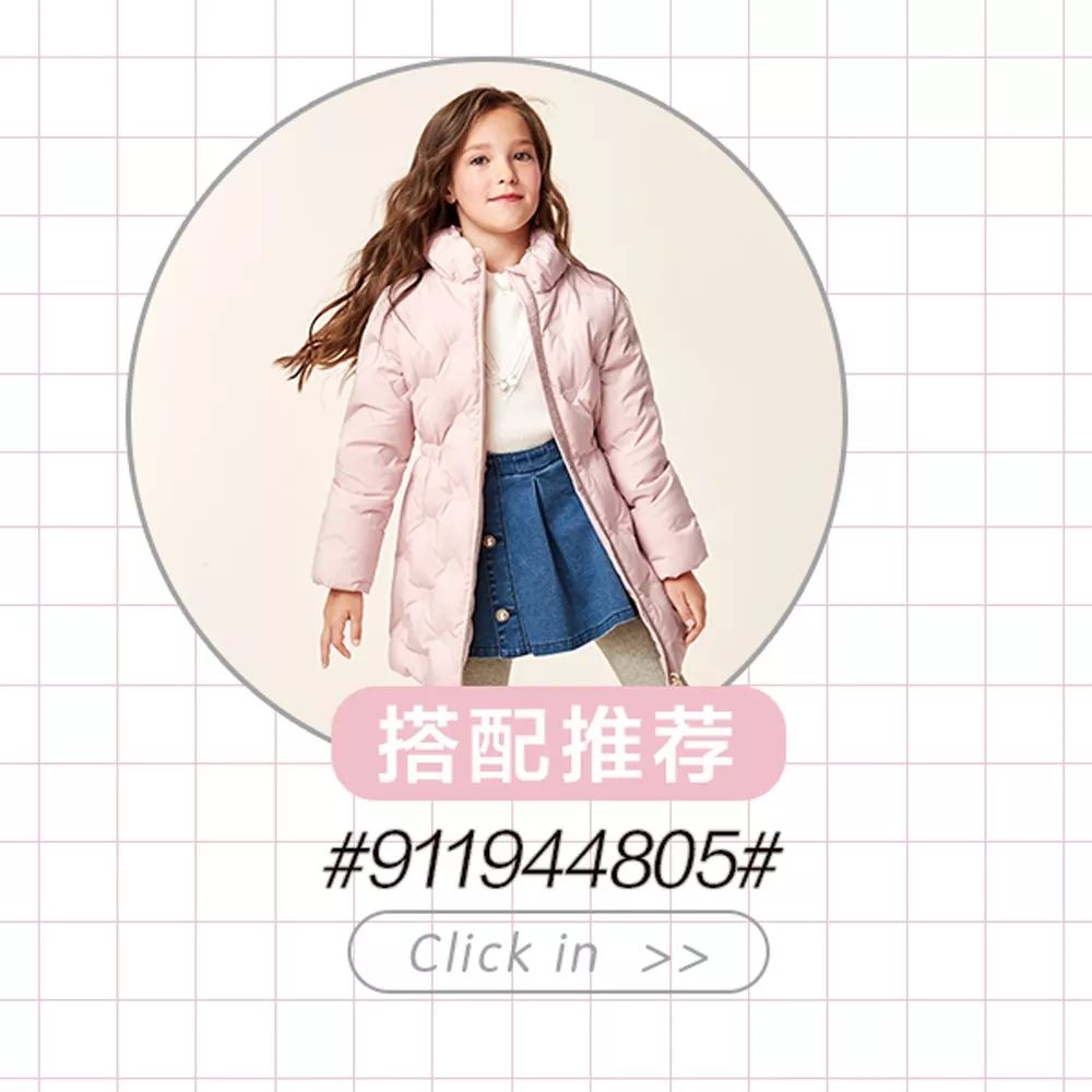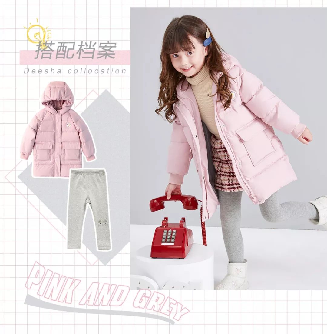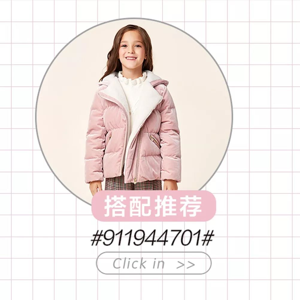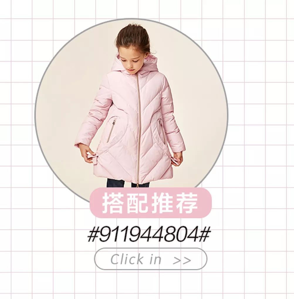 配上粉羽绒的俏丽