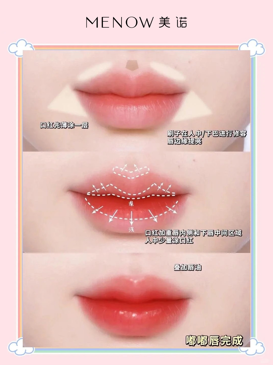 • 最后叠加唇油,水光感拉满,秒变软嫩嘟嘟唇