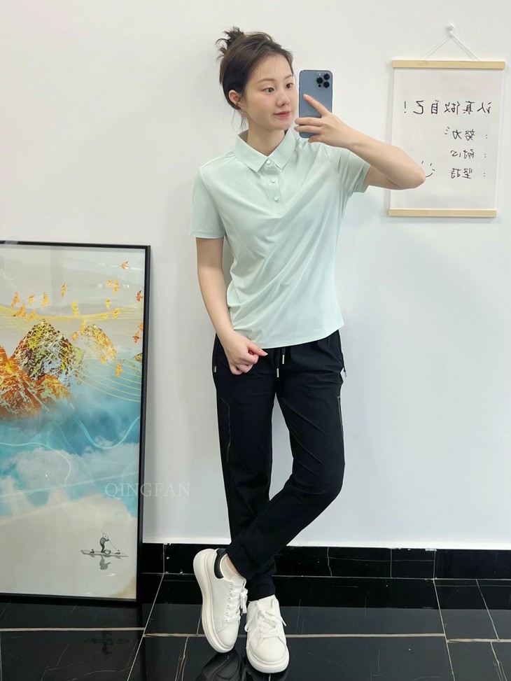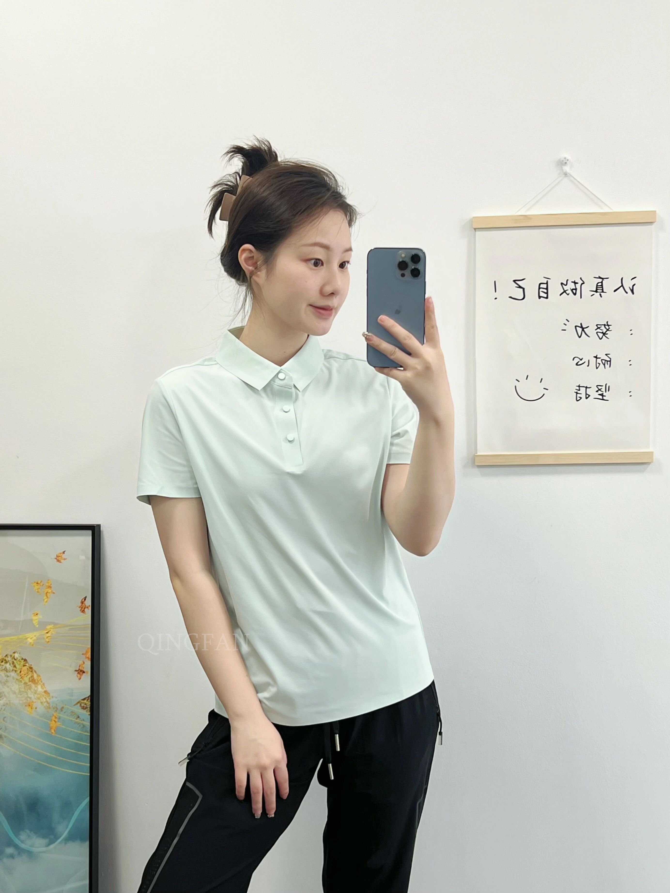 女款三粒扣短袖polo,属于偏修身的版型 凸显身材曲线的同时,不会过于紧身 立体剪裁非常利落显瘦 冰冰凉凉的肤感🧊巨好穿!! 多款小清新颜色 百搭好看! 无论运动健身还是日常穿搭 都超级实用~