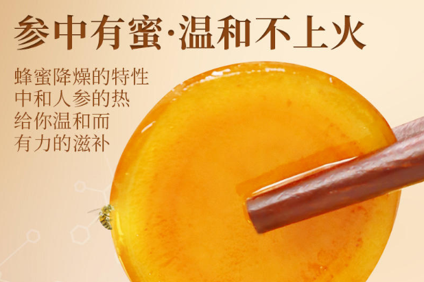 而人参蜜片是通过将人参药物进行切片,利用蜂蜜炮制而成。