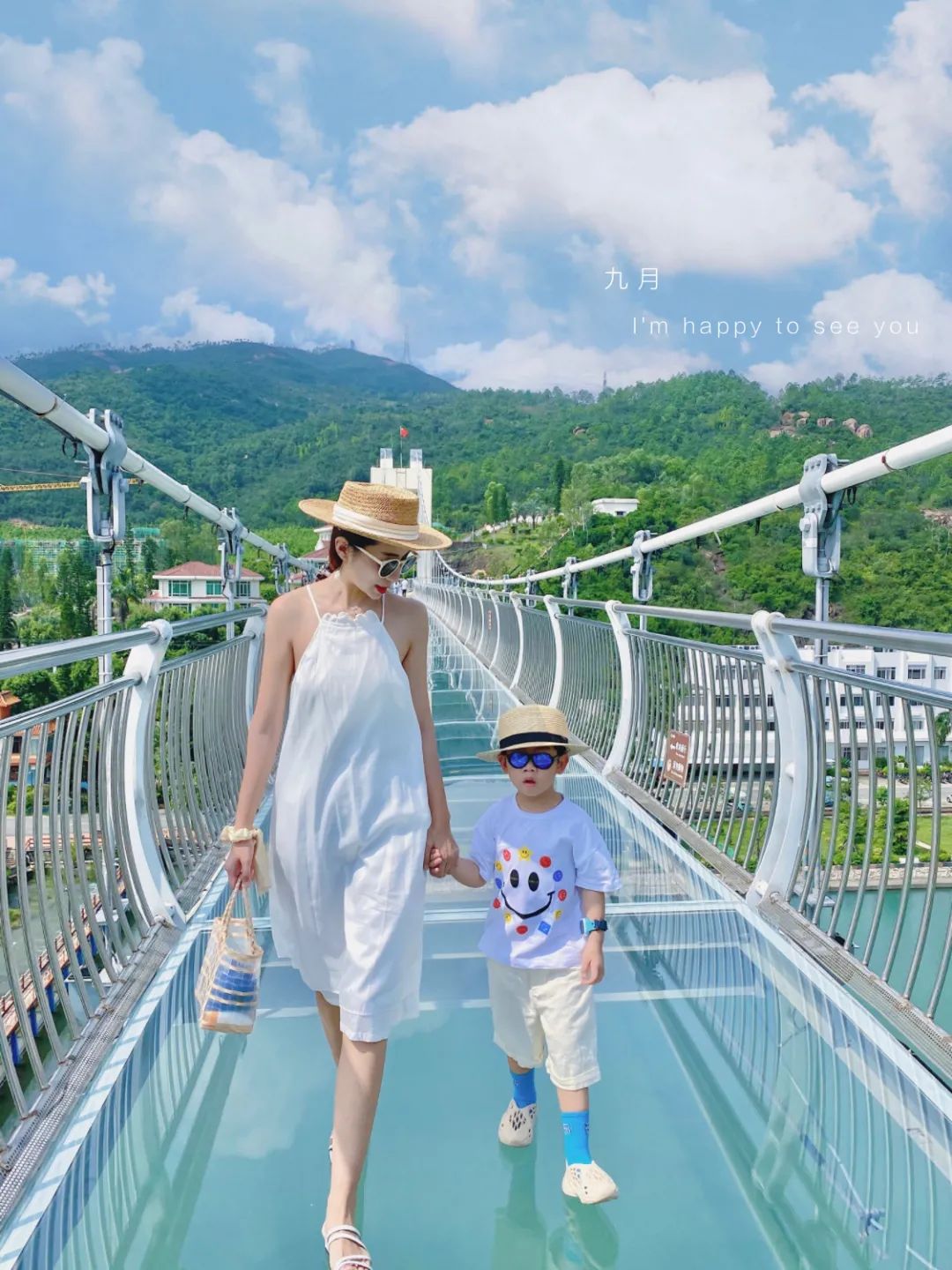 惊险刺激的高空玻璃桥,从高处一览古兜的景色,风景如画。更有全新景点—天宫之境,浅蓝的玻璃倒映出蓝天白云和高山,与大自然的天然造物融为一体,美丽至极呀!