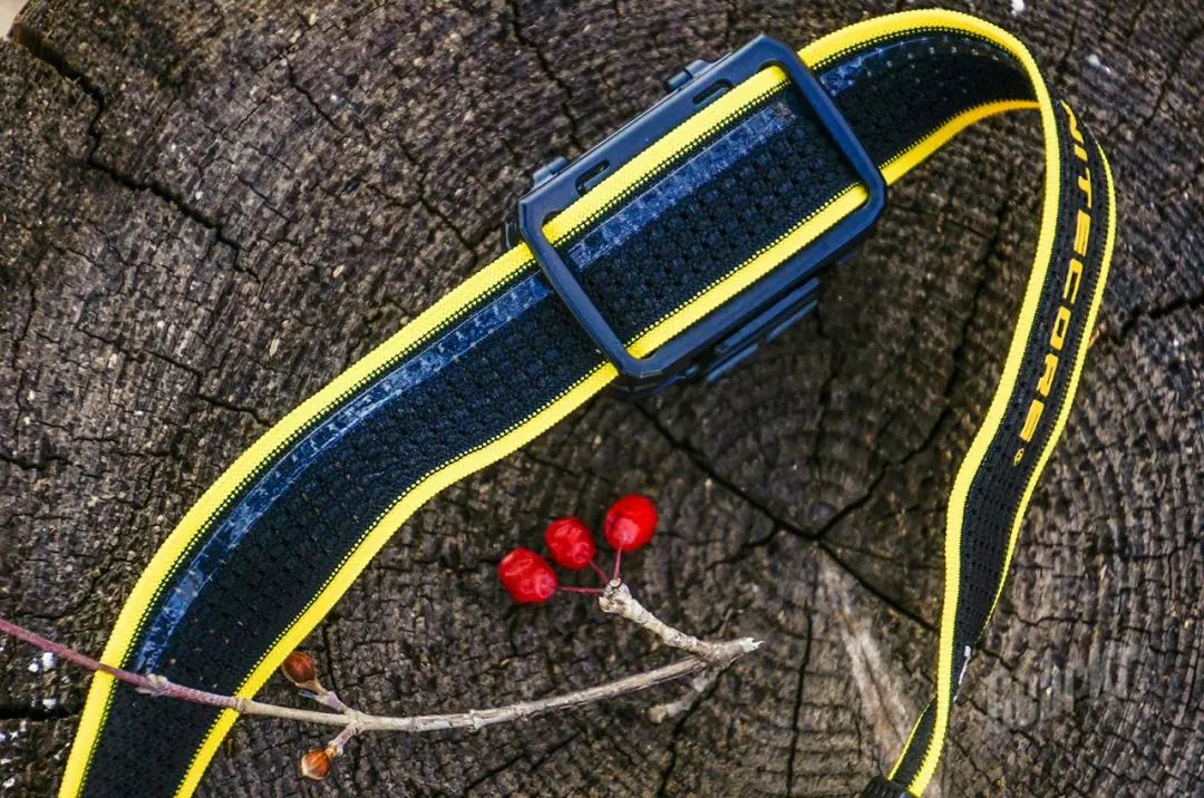 头灯带幅宽2.6厘米,表面全部冲孔,实现了很高的透气性,也能有效减重,弹性适中,佩戴舒适。